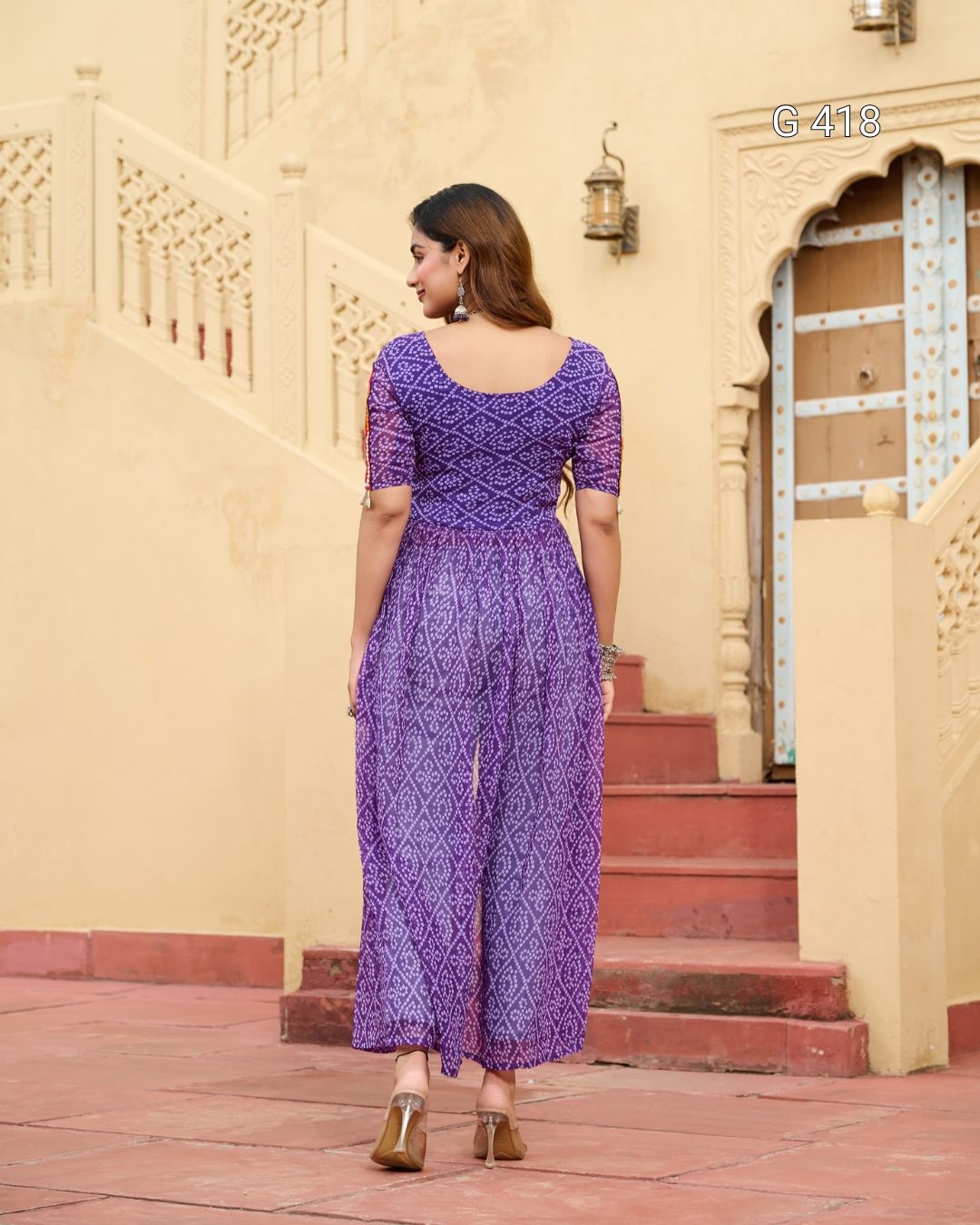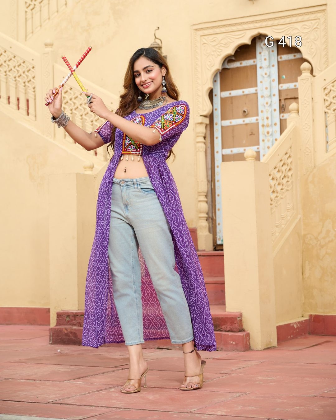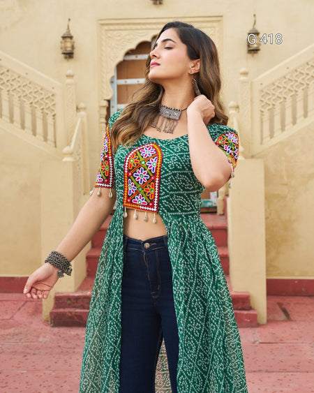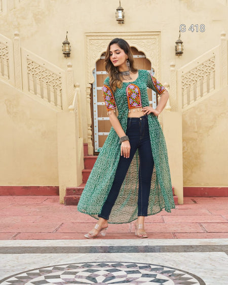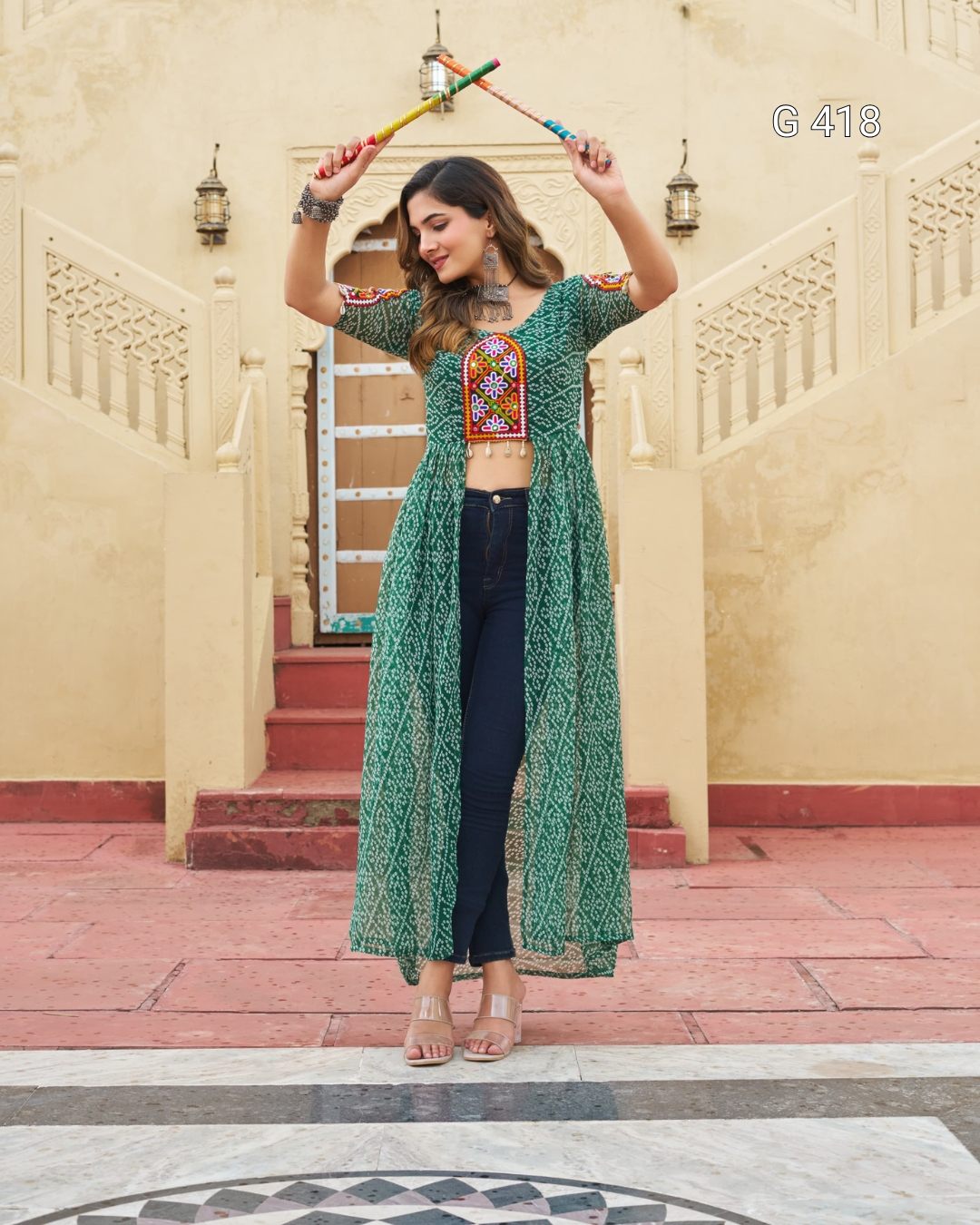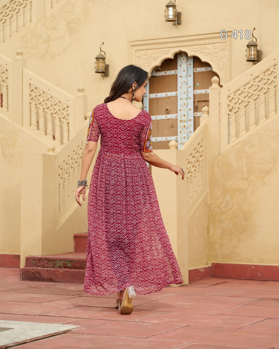 Bandhani Print Faux Georgette Kurti with Kutchi Patchwork – G 418