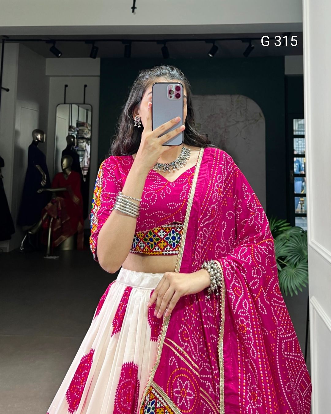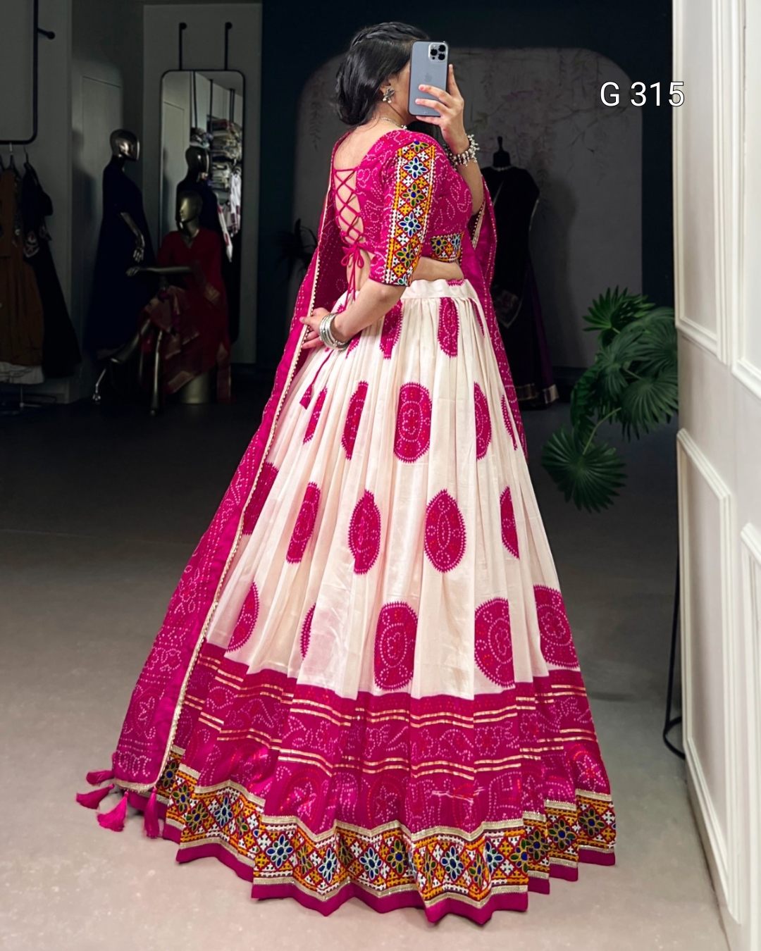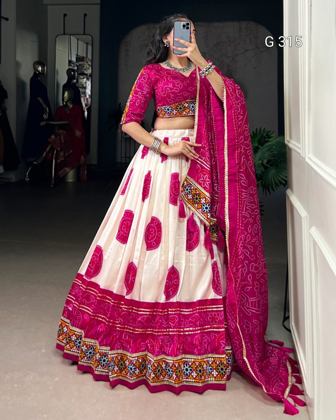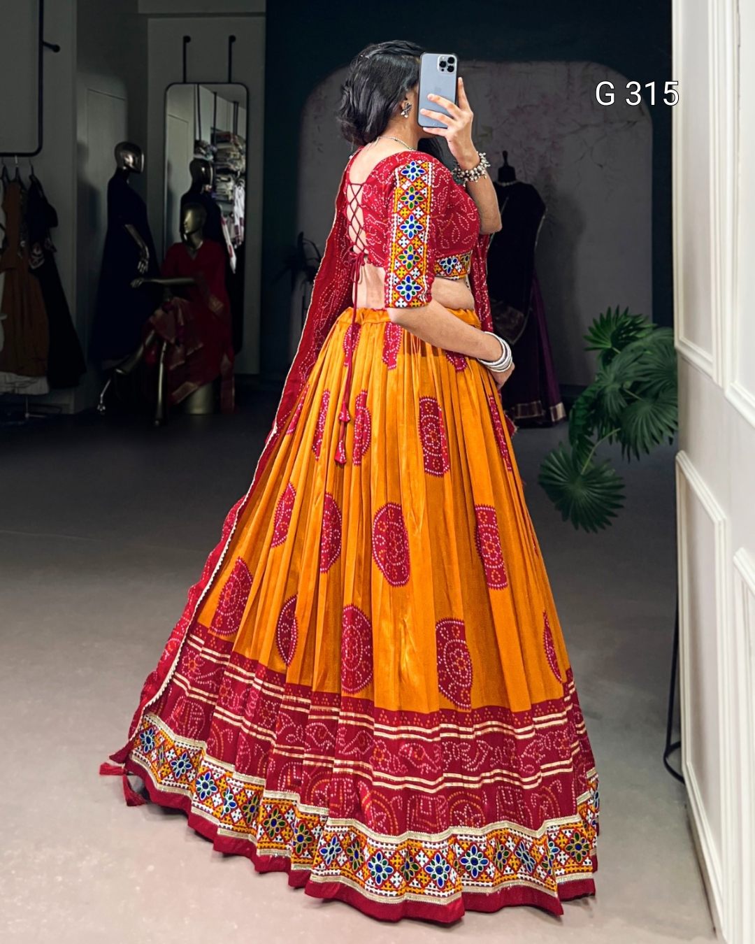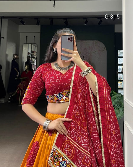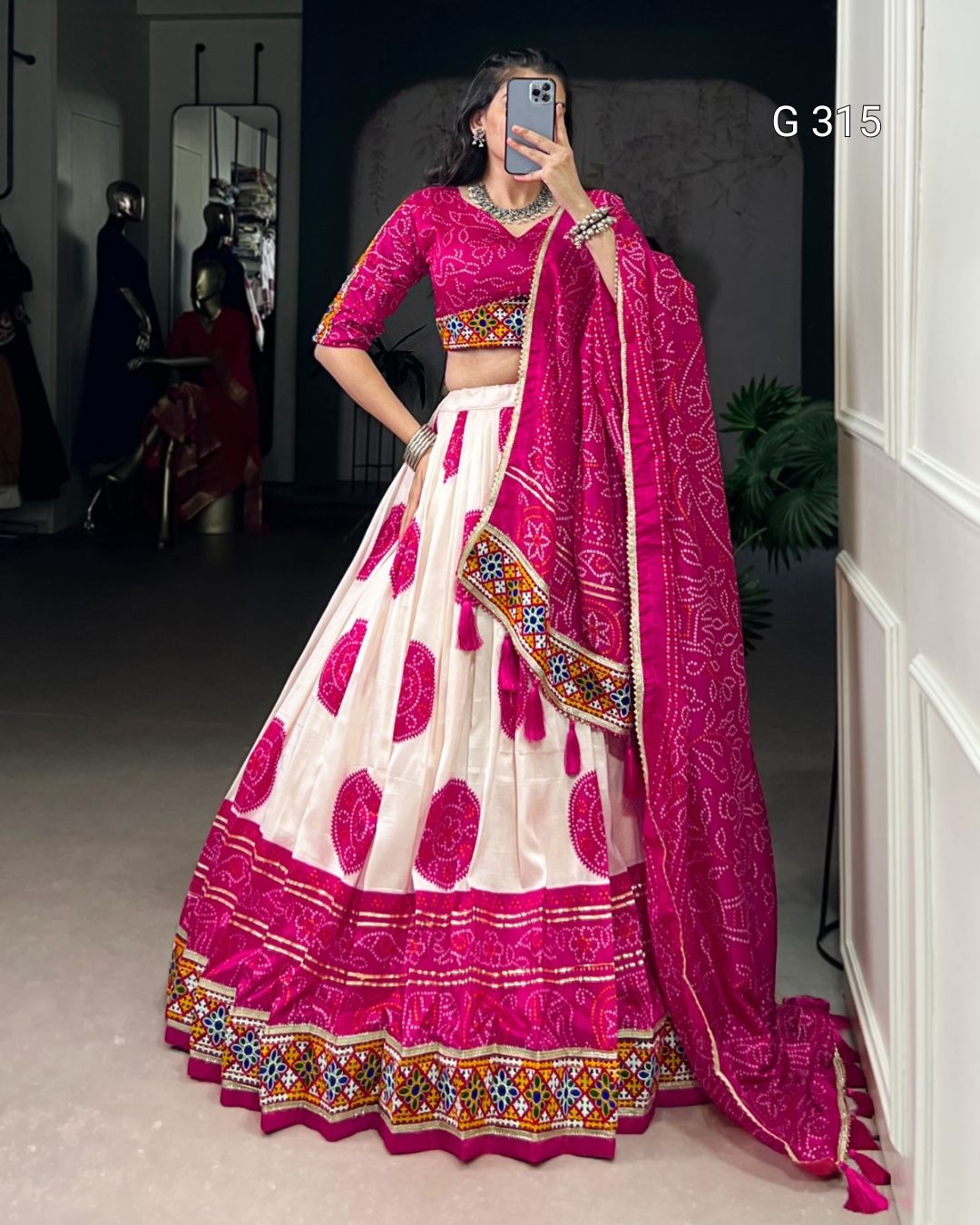 Bandhej Print Tasar Silk Lehenga with Gamthi Work – G 315