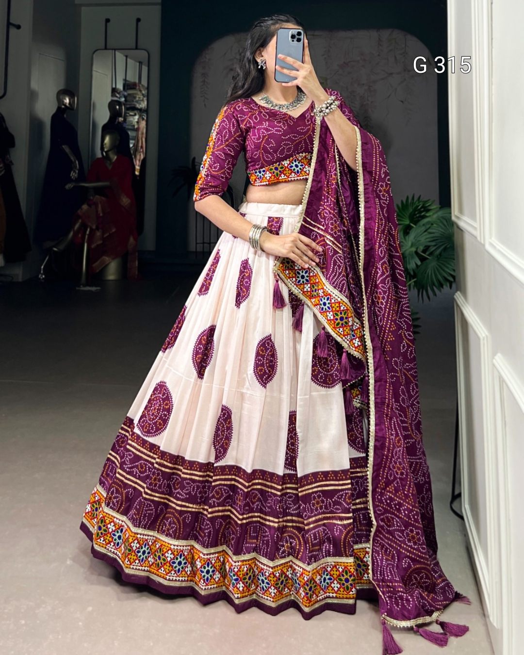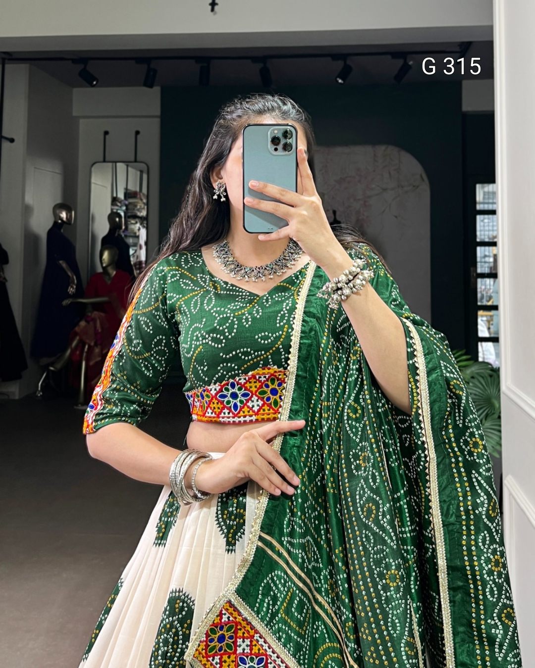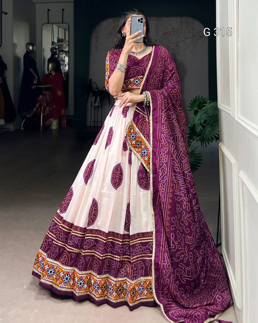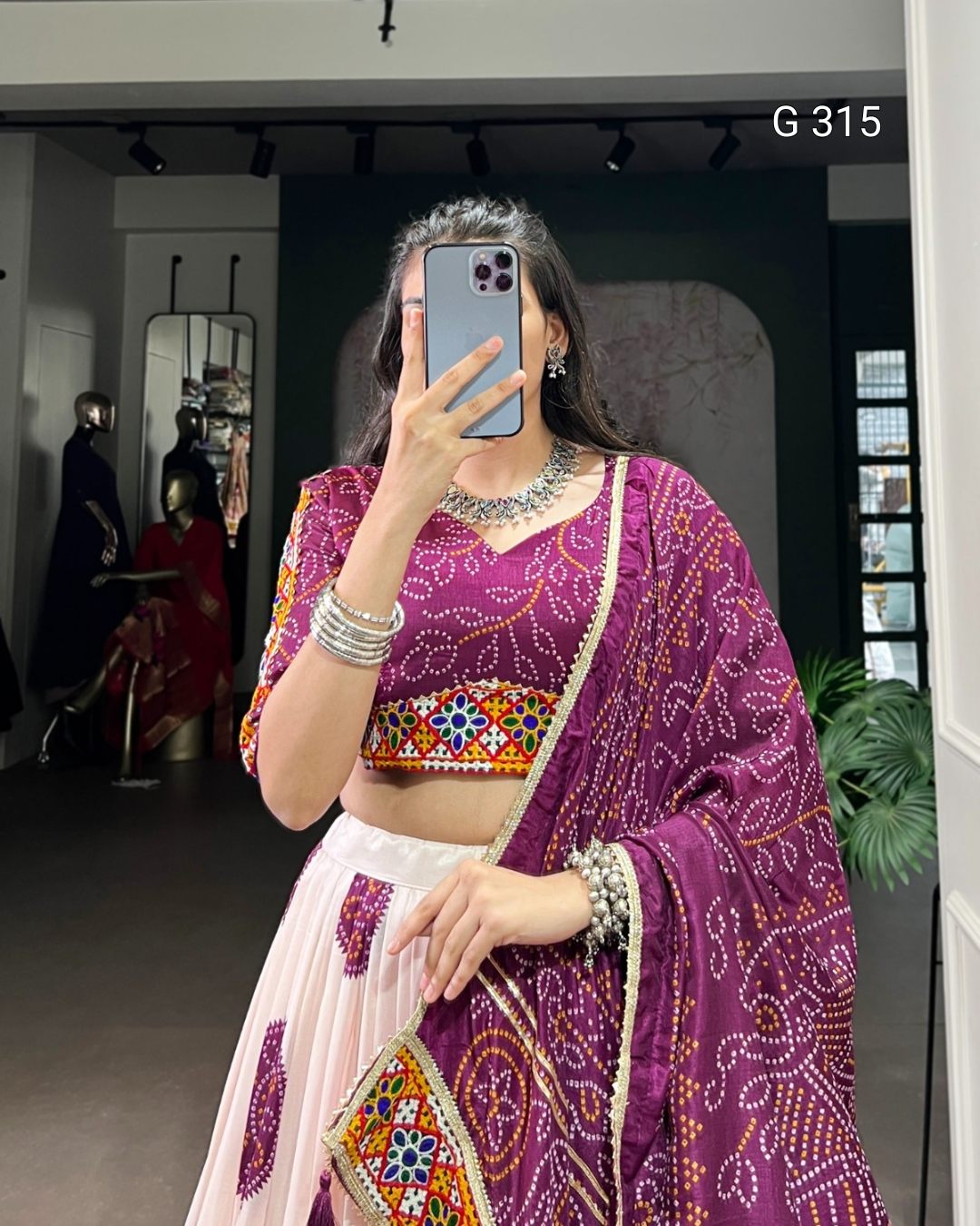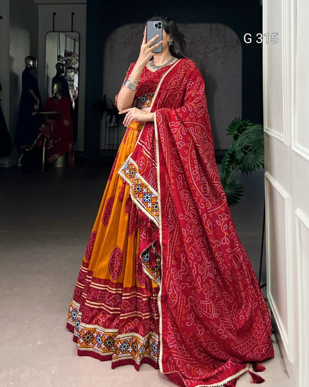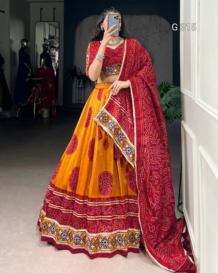 Bandhej Print Tasar Silk Lehenga with Gamthi Work – G 315