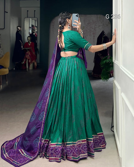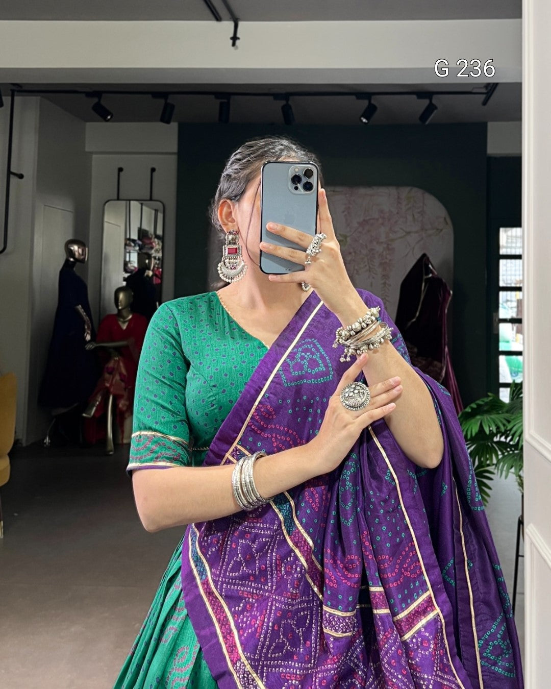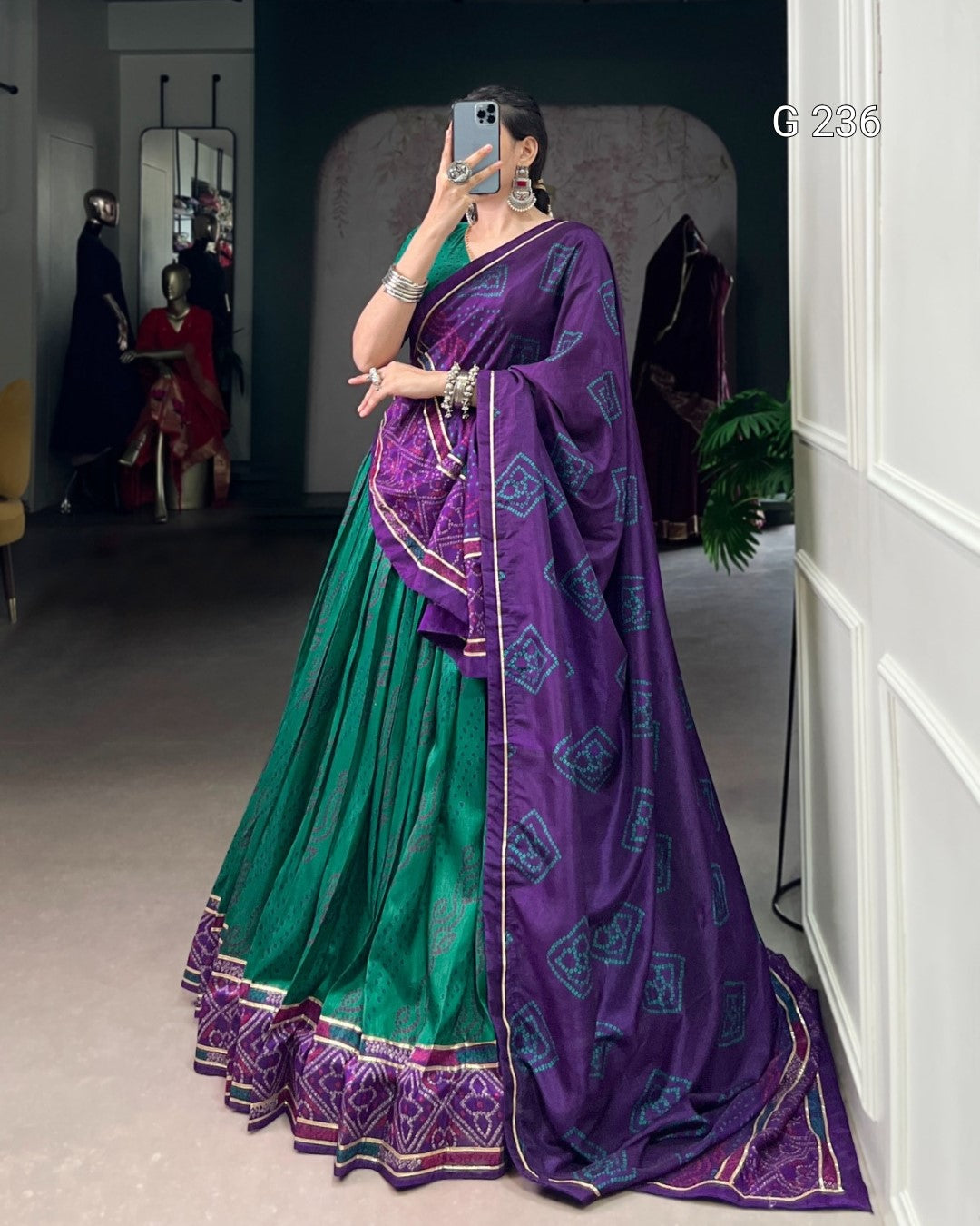 Bandhej Print Tasar Silk Lehenga with Gotta Patti Lace – G 236 Green