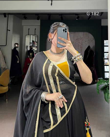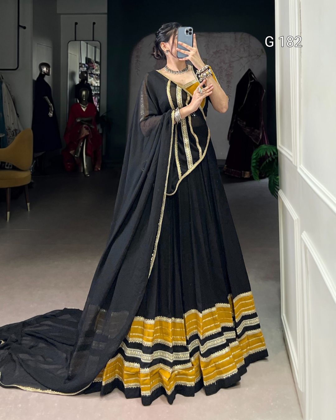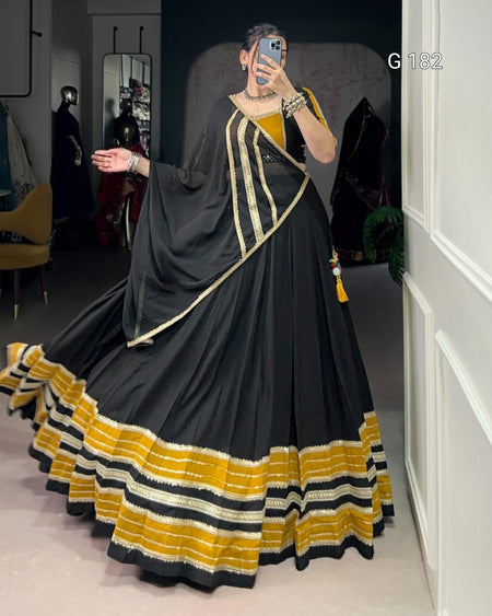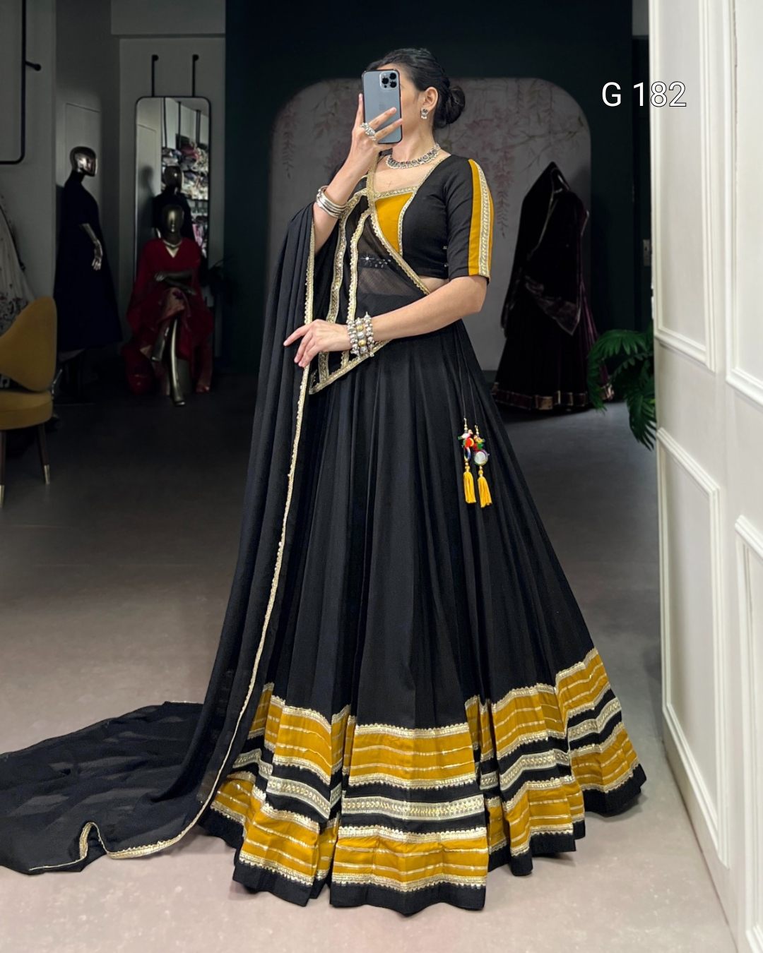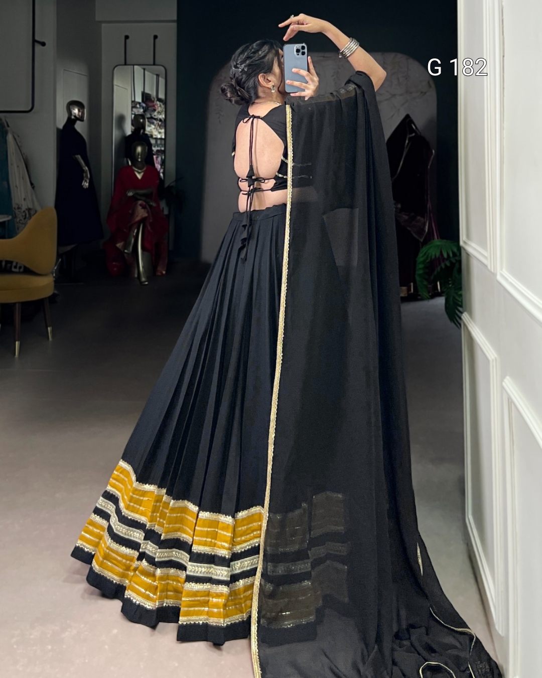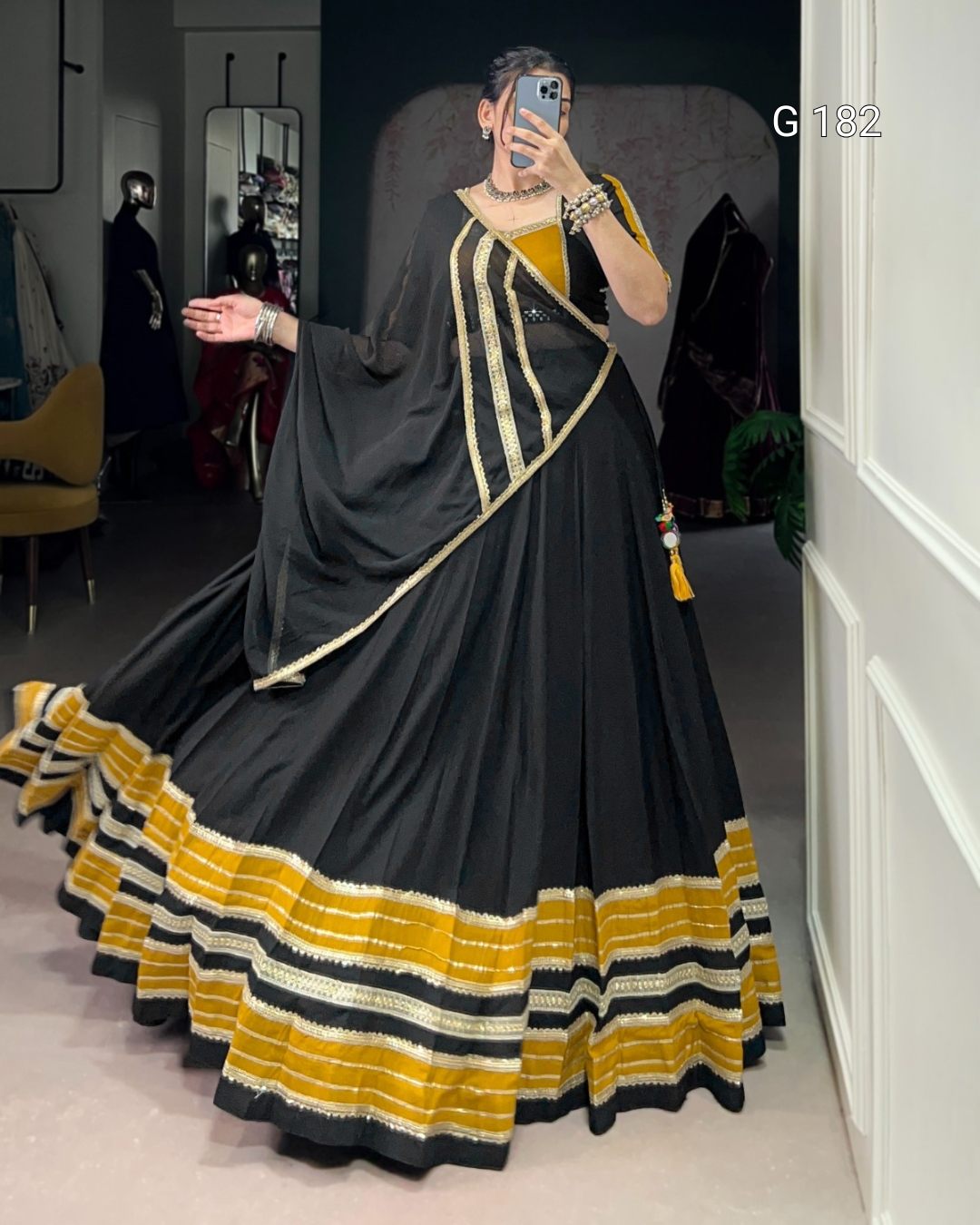 Black Pure Rayon Lehenga with Sequins Lace & Gota Patti Touch-Up – G 182 Black