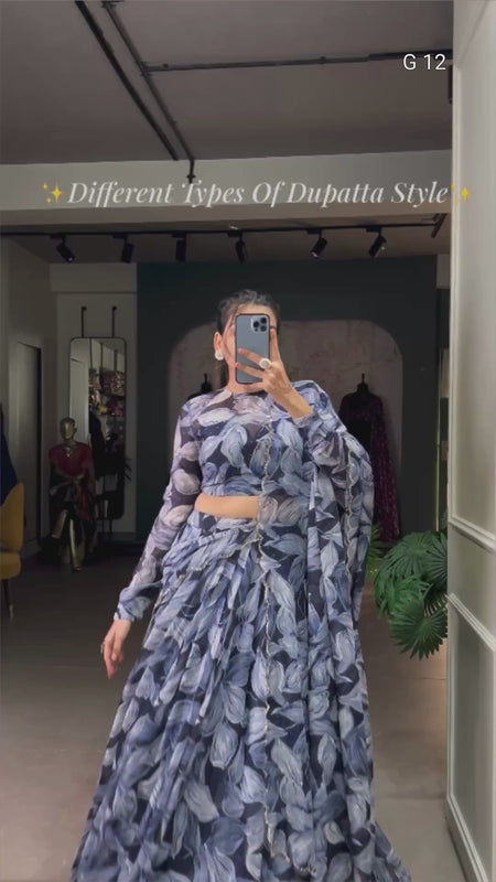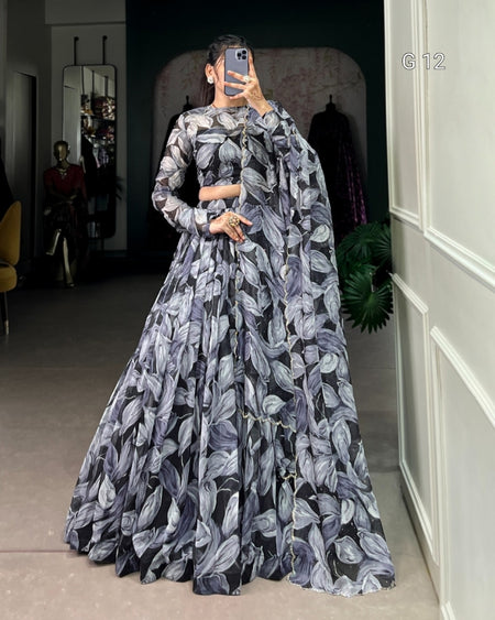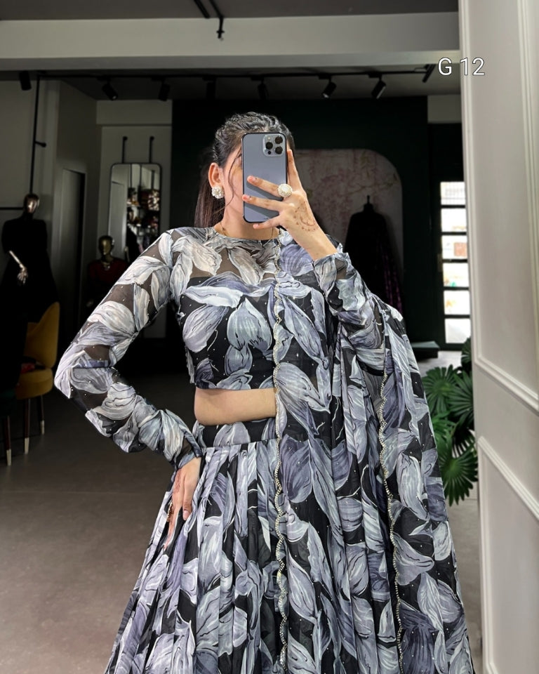 Black Tabby Silk Lehenga with Printed Hotfix Work – G 12 Black
