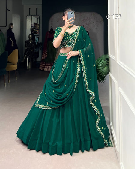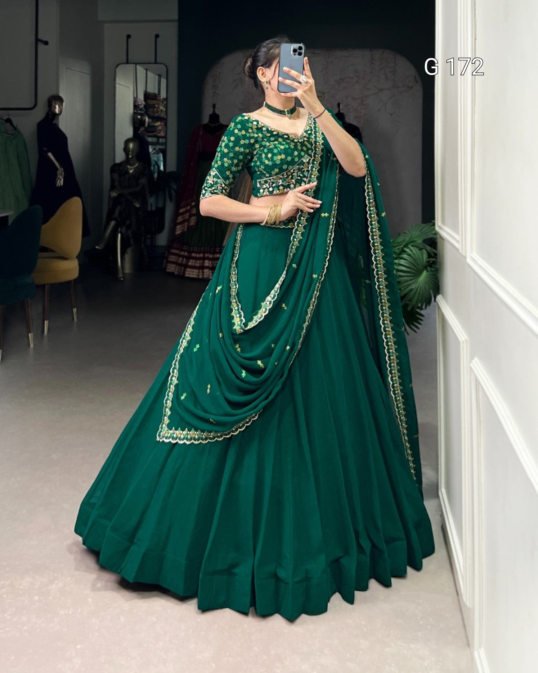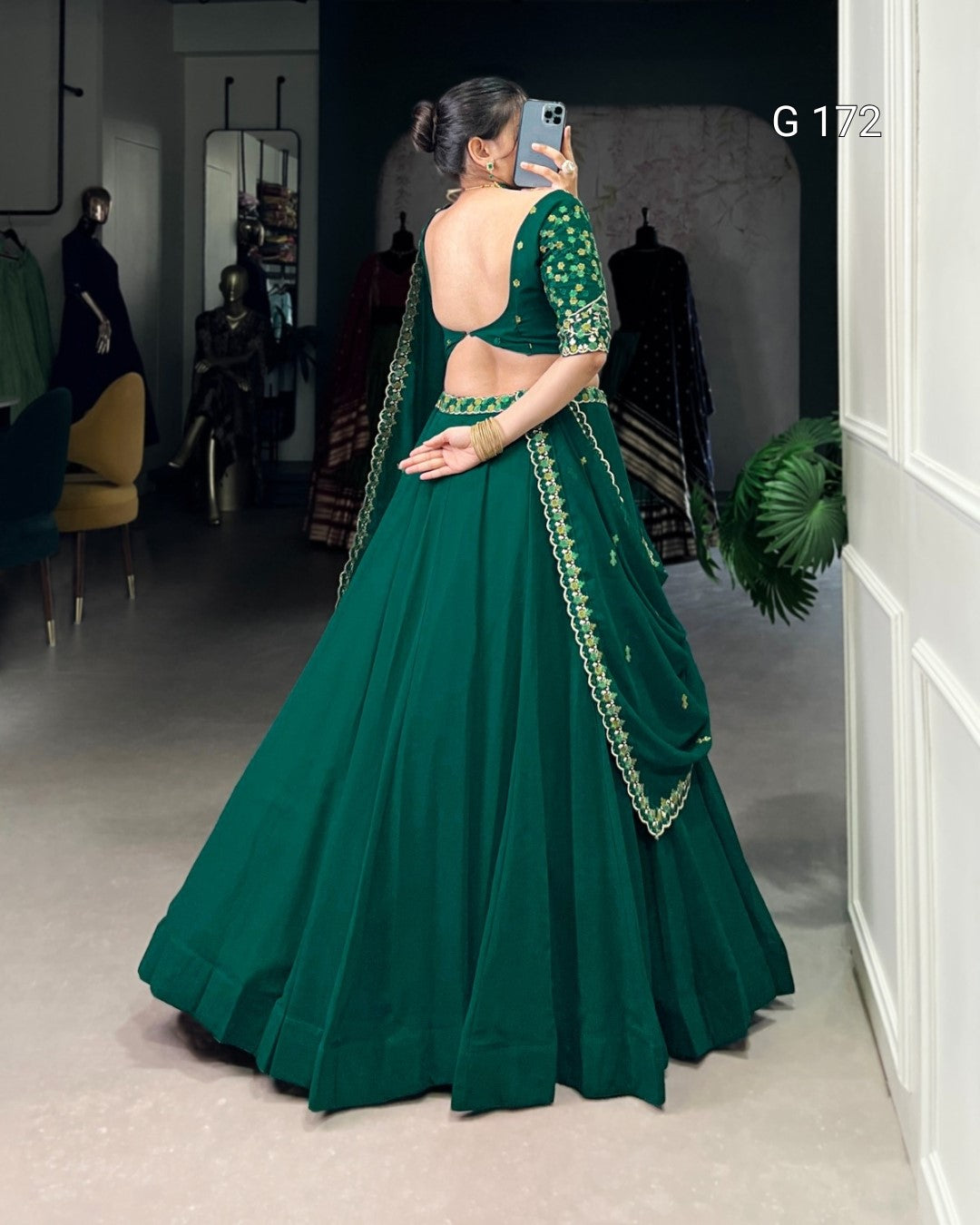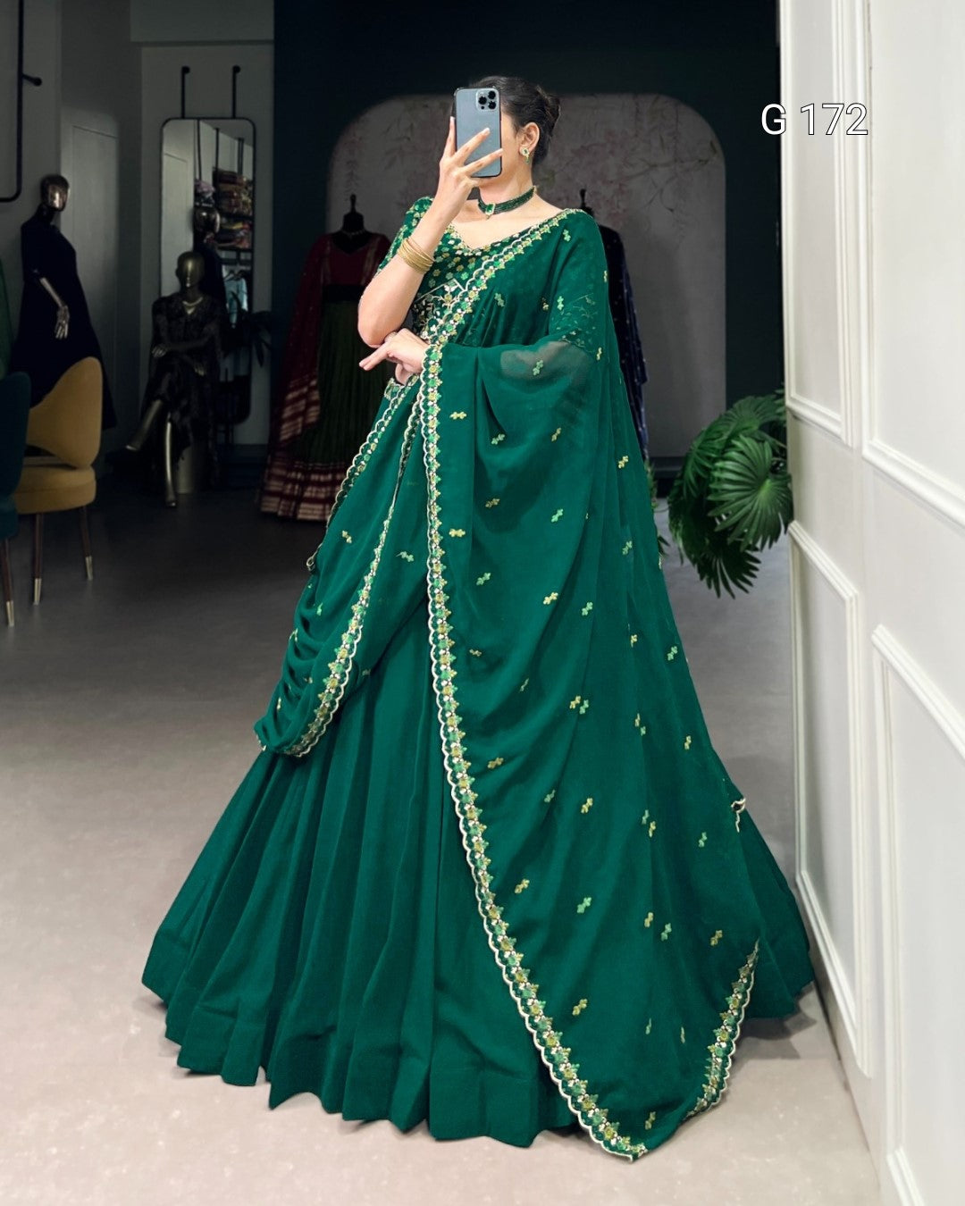 Bottle Green Georgette Lehenga with Thread Embroidery Belt – G 172 Bottle Green