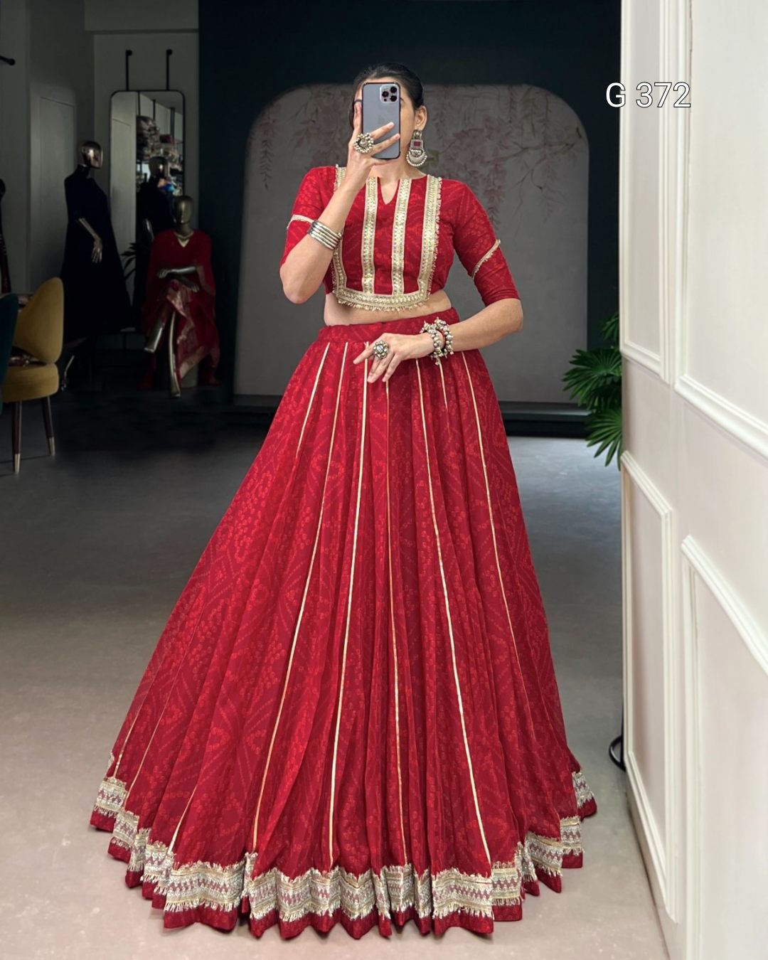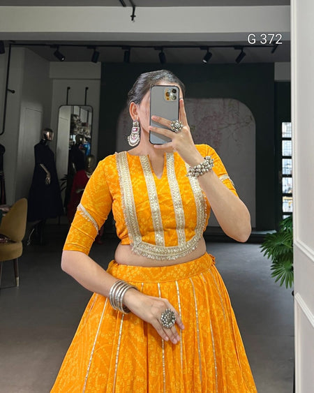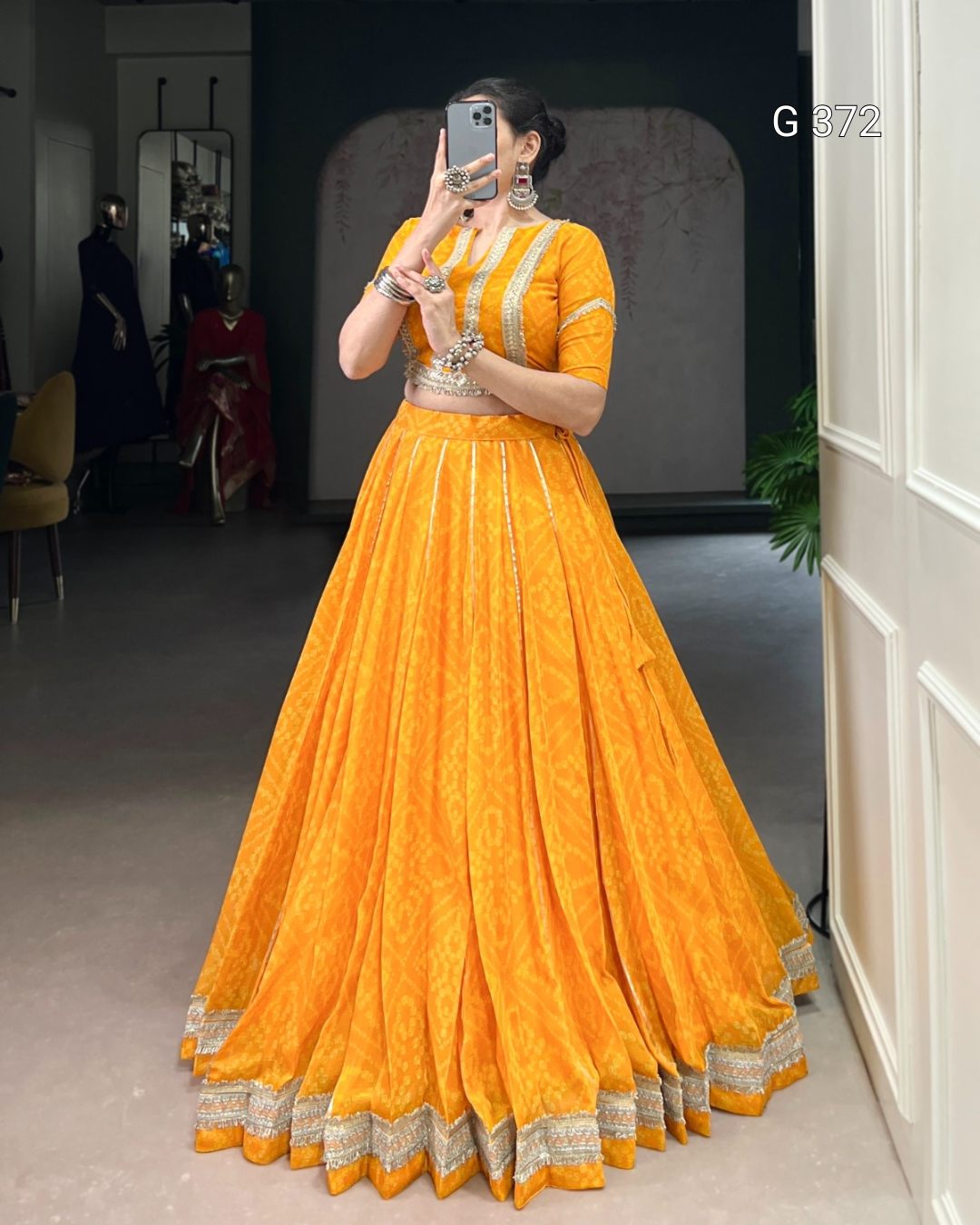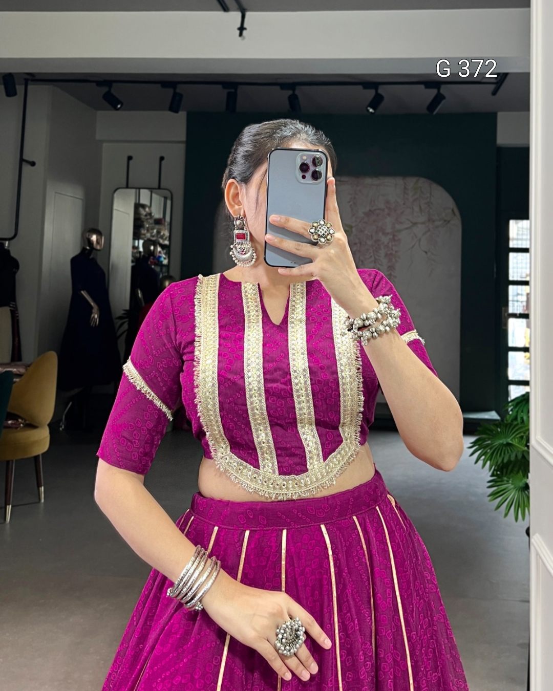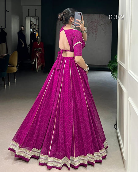 Chiffon Lehenga with Bandhej Print & Sequins Lace – G 372