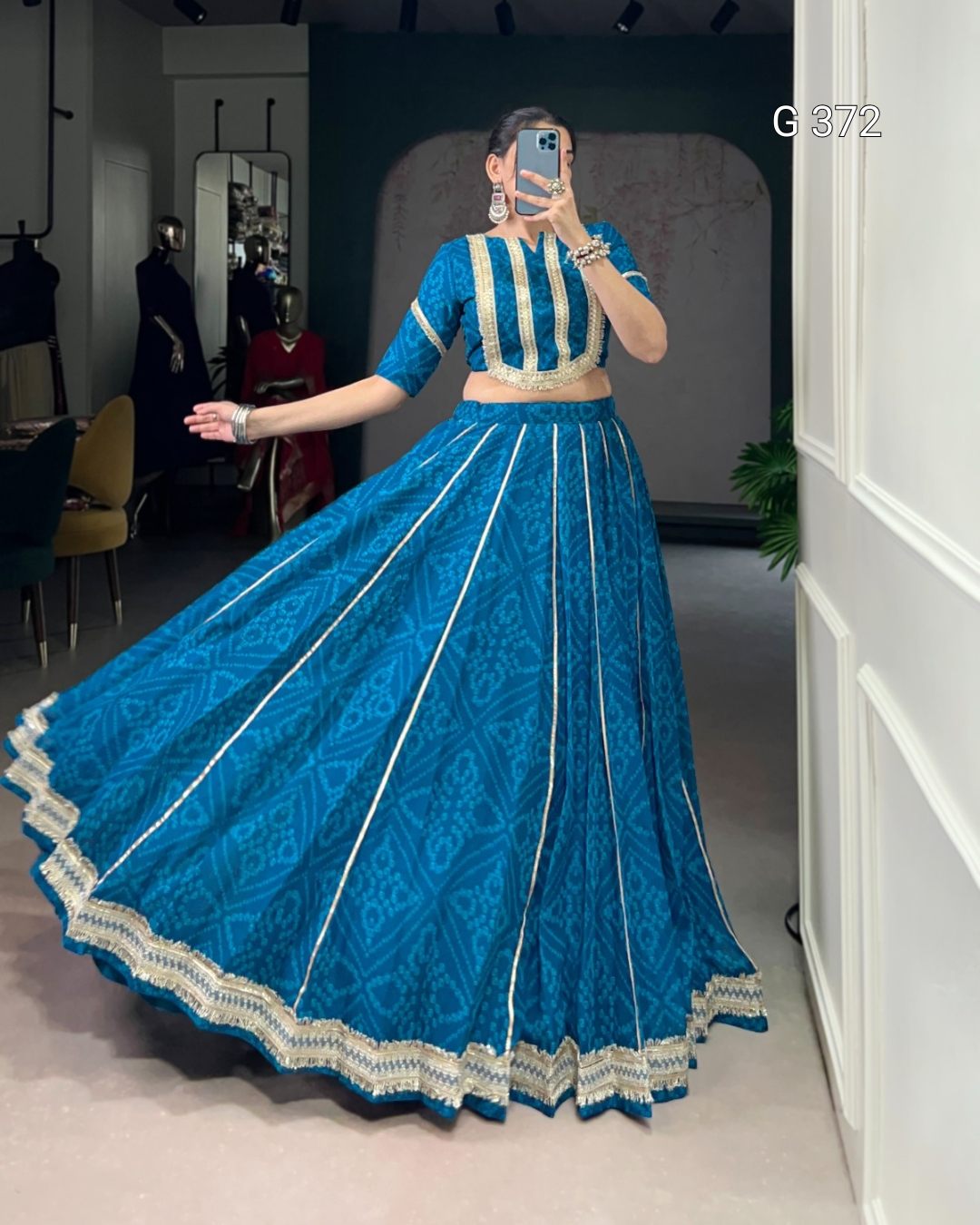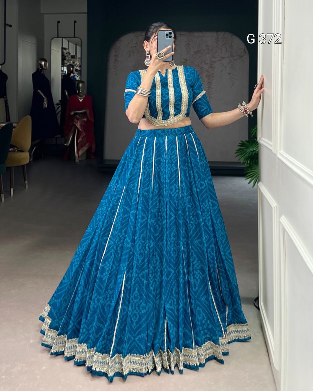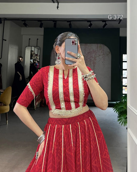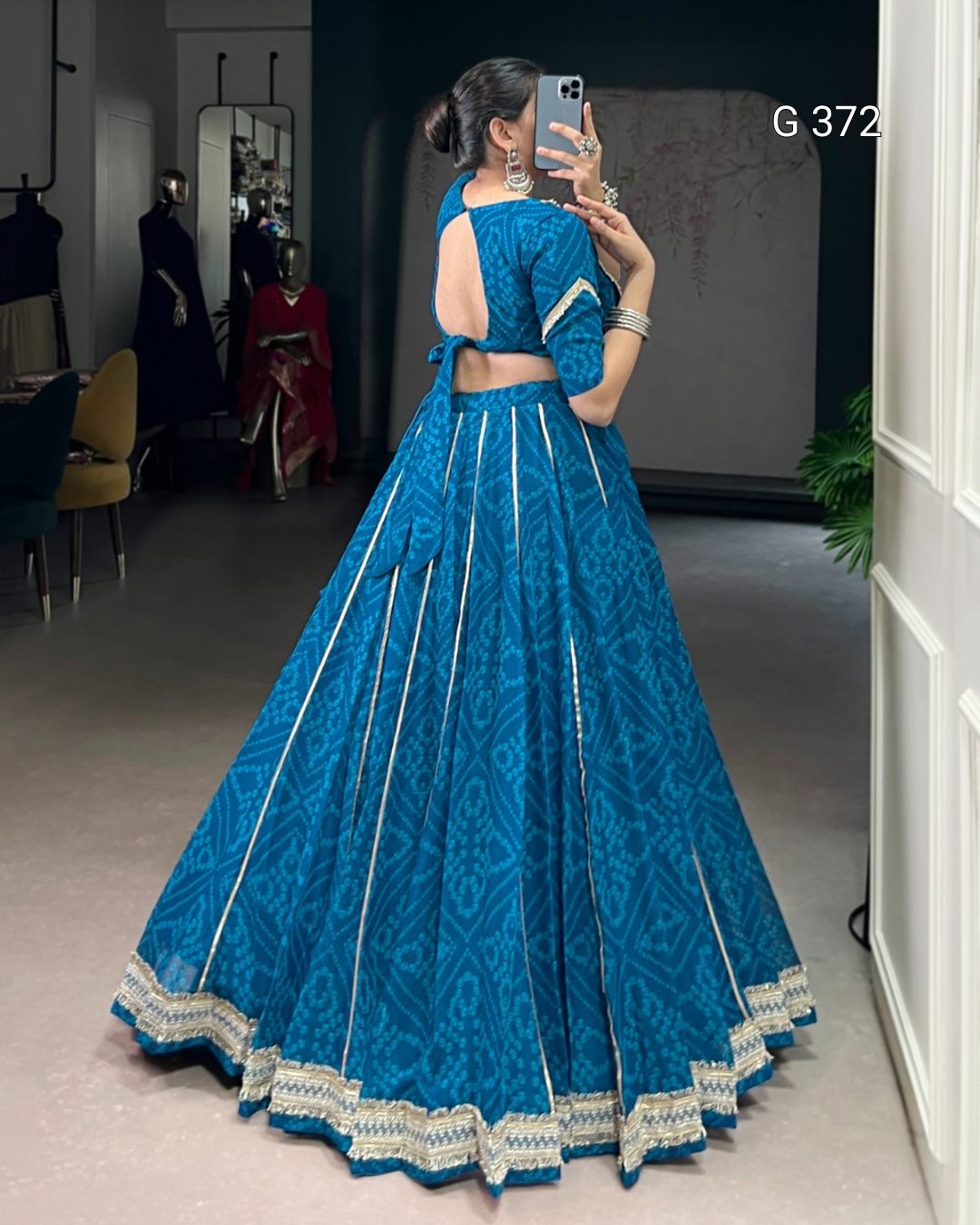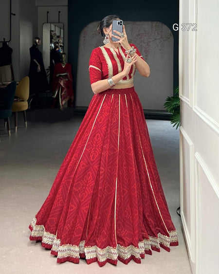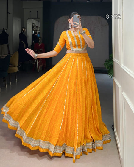 Chiffon Lehenga with Bandhej Print & Sequins Lace – G 372