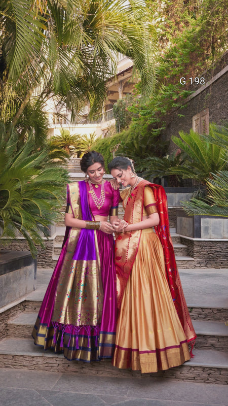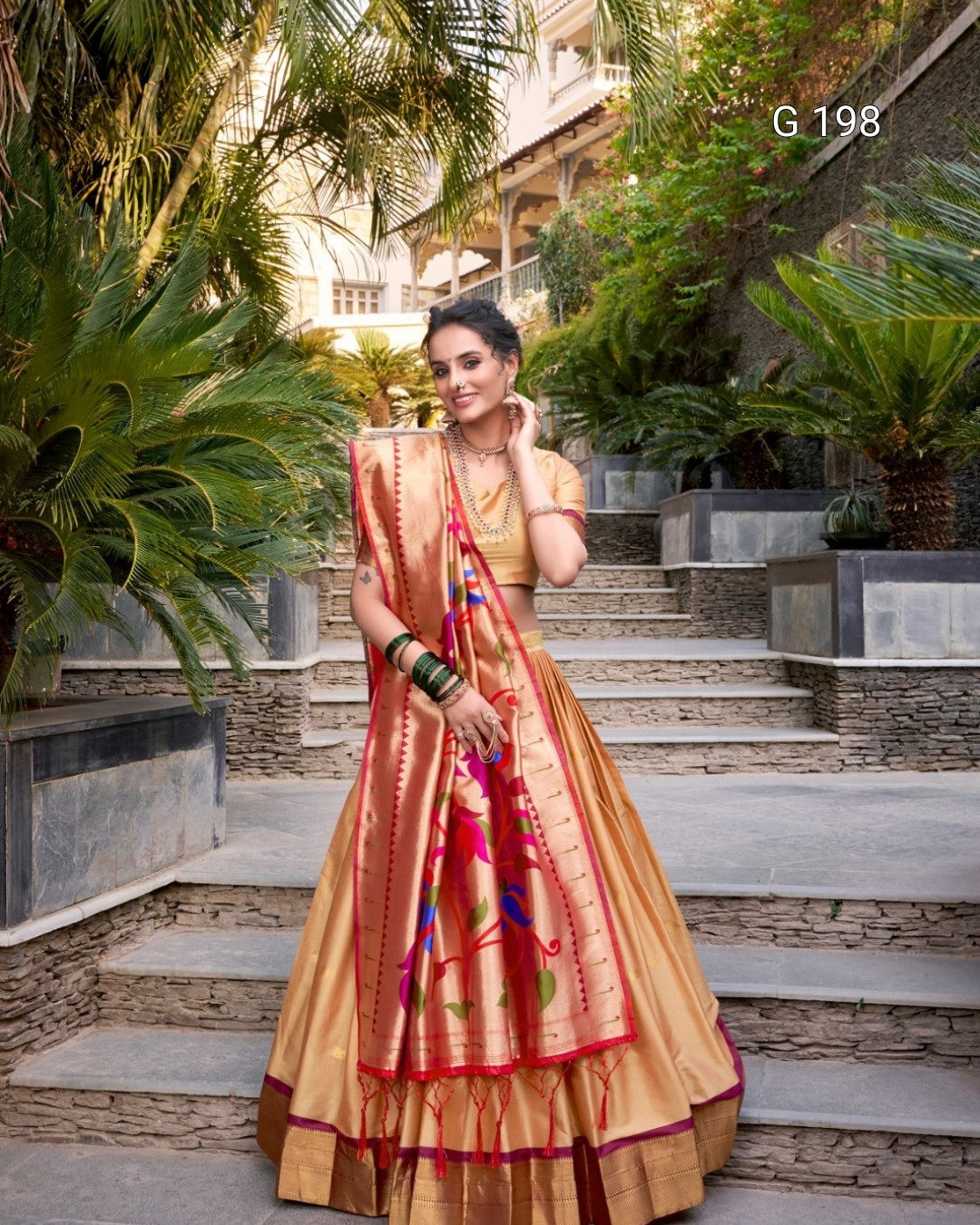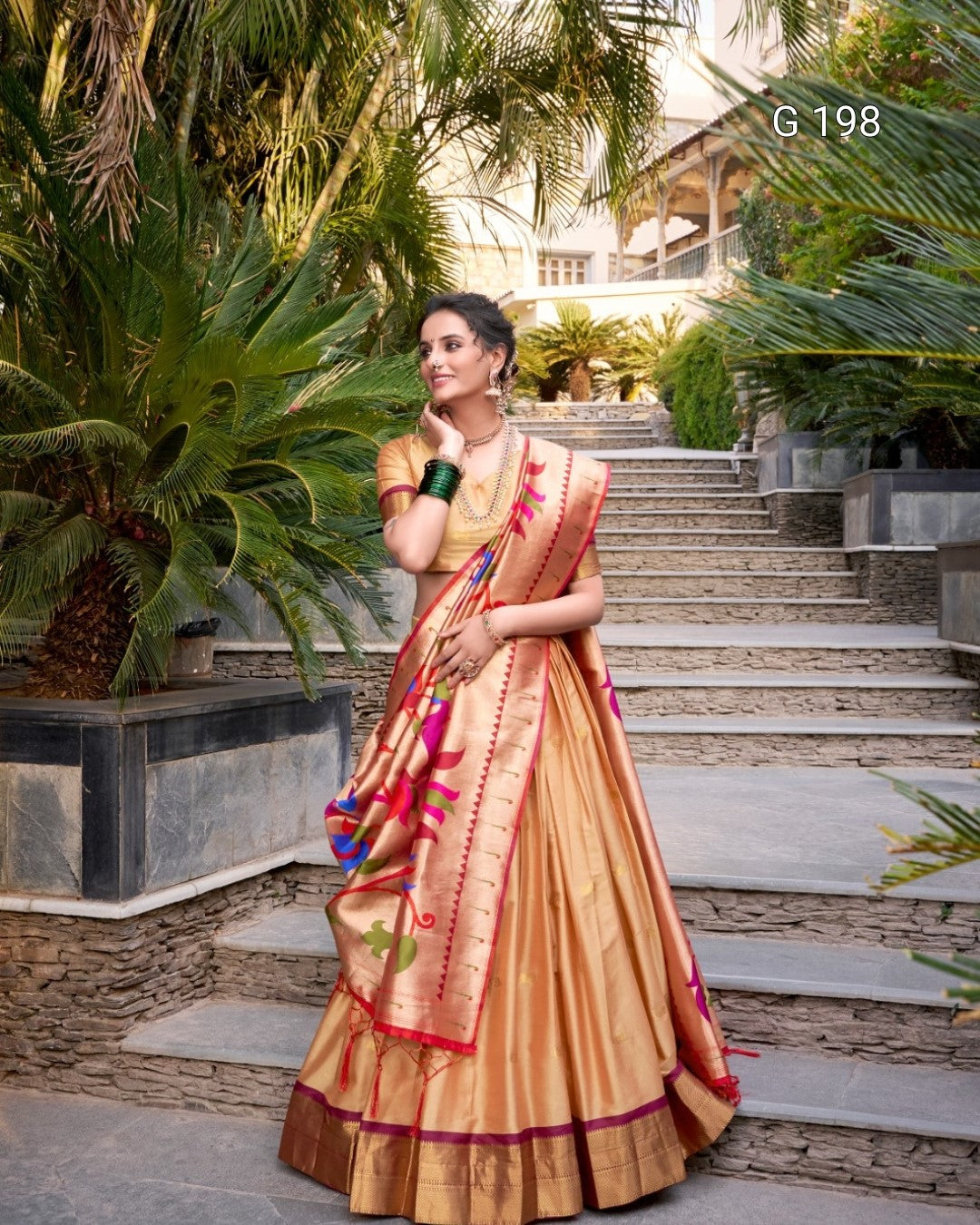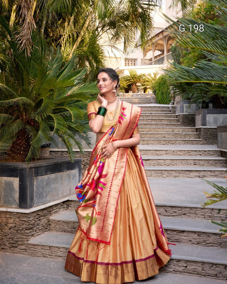 Chiku Jacquard Silk (Paithani) Lehenga with Zari Weaving Work – G 198 Chiku