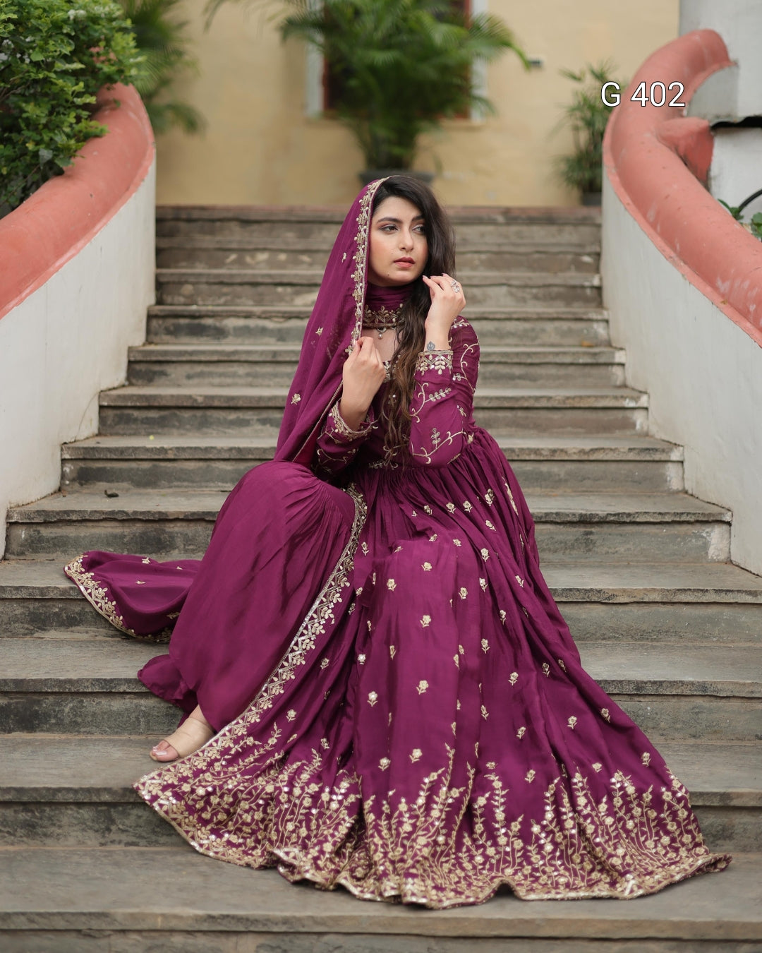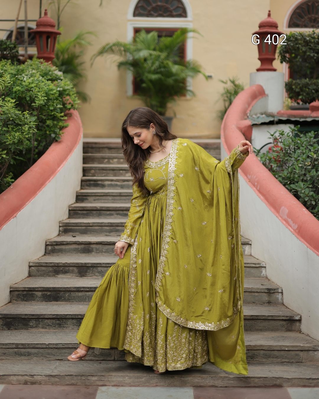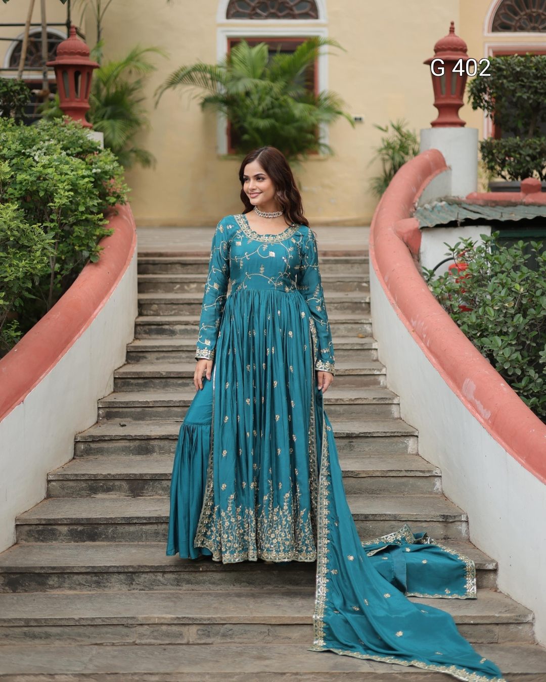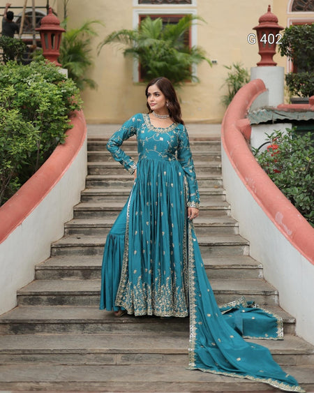 Chinon Kurti with Sequins Embroidered Sharara & Dupatta – G 402