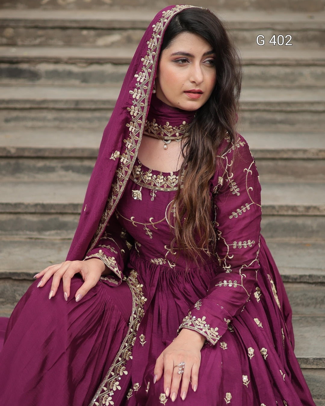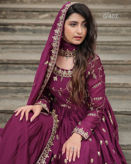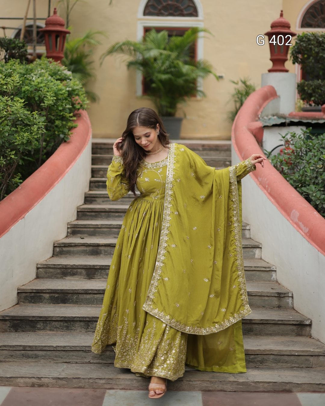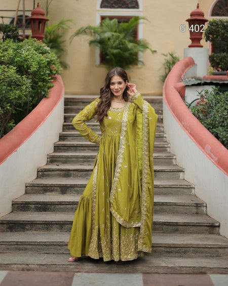 Chinon Kurti with Sequins Embroidered Sharara & Dupatta – G 402