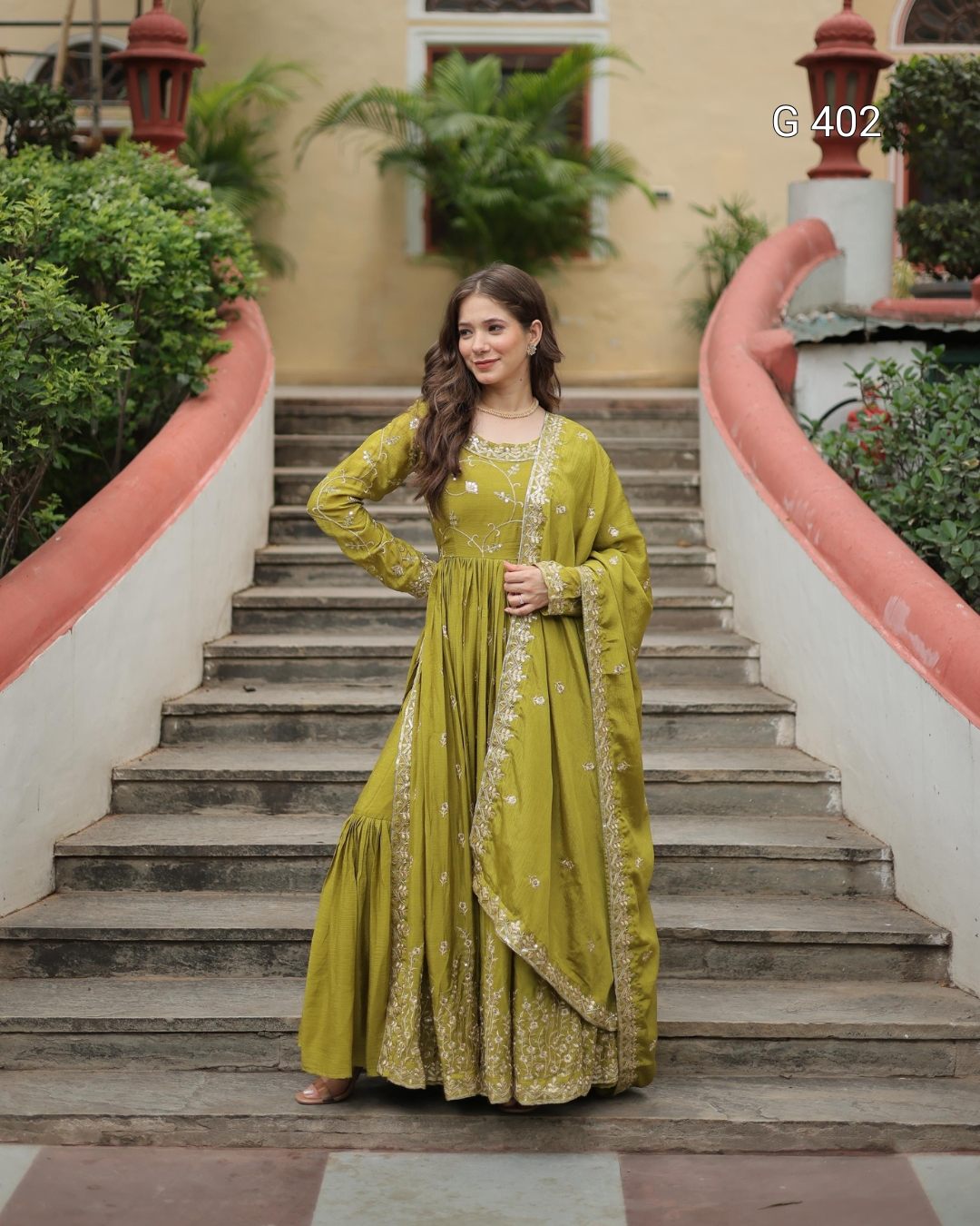 Fabric & Work: Chinon with Rich Sequins Embroidered Work