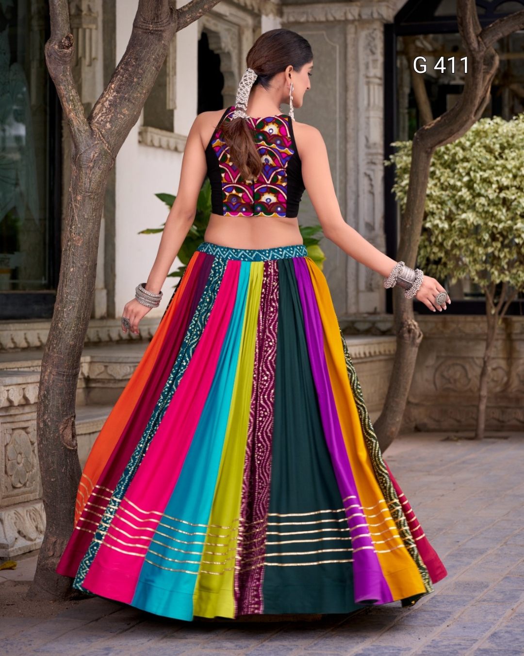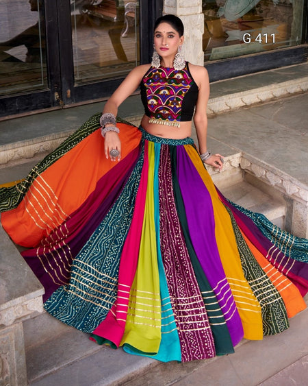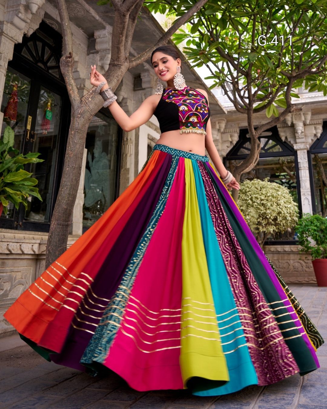 Cotton Printed Lehenga with Gota-Patti & Mirror Lace Top – G 411 Multi