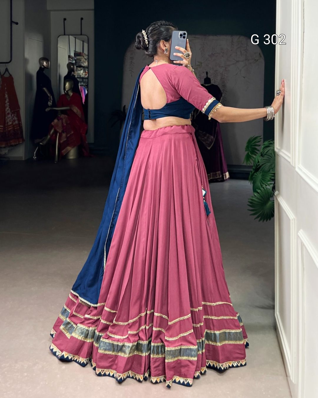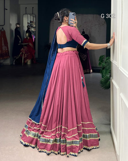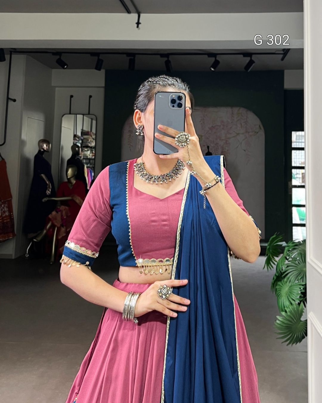 Dark Pink Pure Rayon Lehenga with Lace & Mirror Work – G 302 Dark Pink