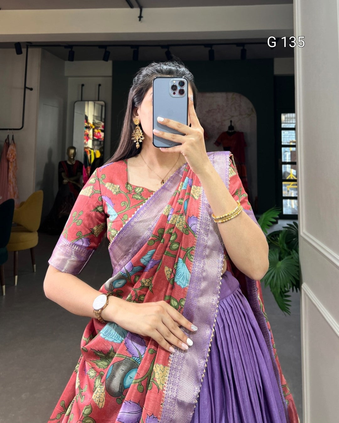 Dola Silk Kalamkari Printed Lehenga with Zari Weaving Border & Tassels – G 135 launder
