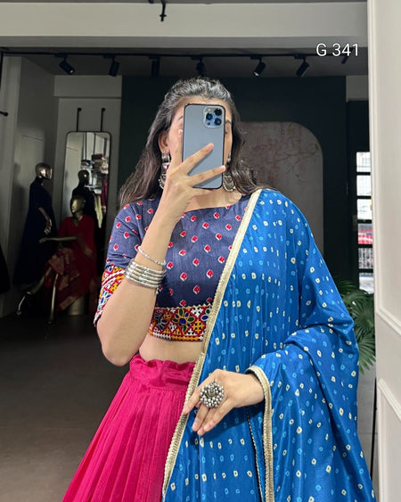 Work: Bandhej Print With Foil Work And Real Mirror Gamthi Work With Lace Border Also Comes With Tassels