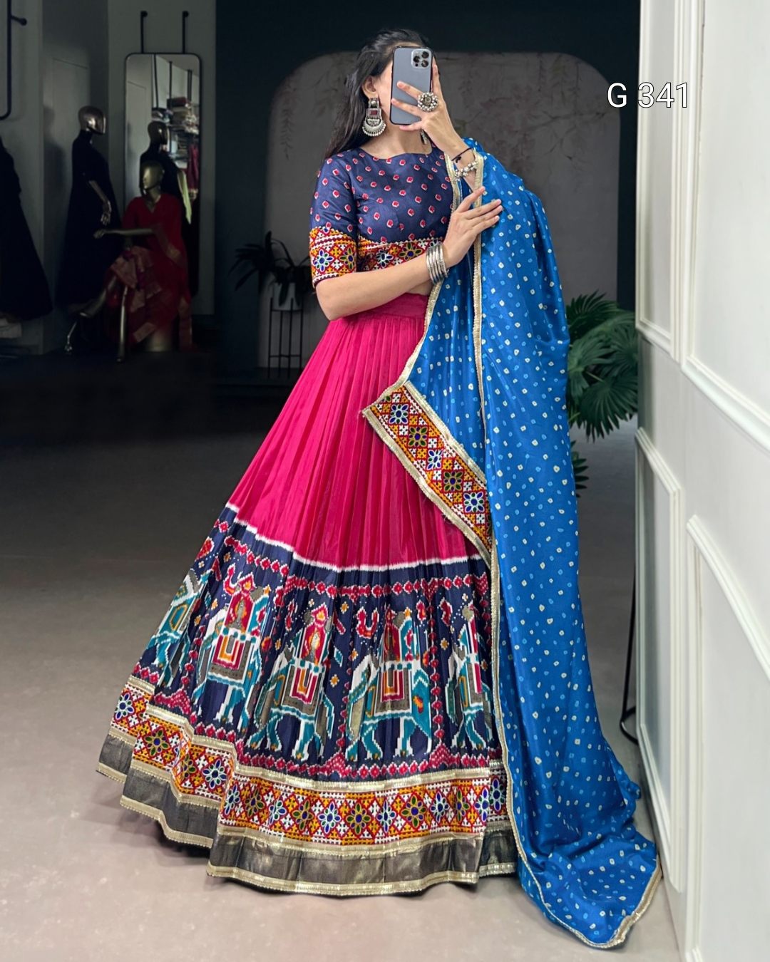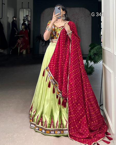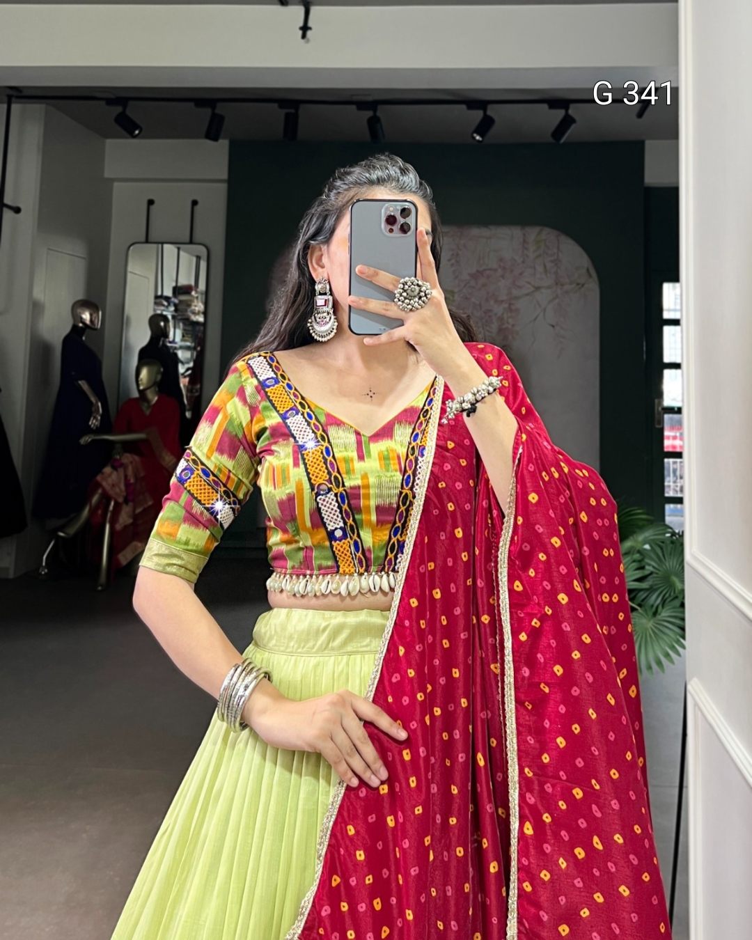 Elegant Tasar Silk Lehenga with Foil & Mirror Gamthi Work - G 341