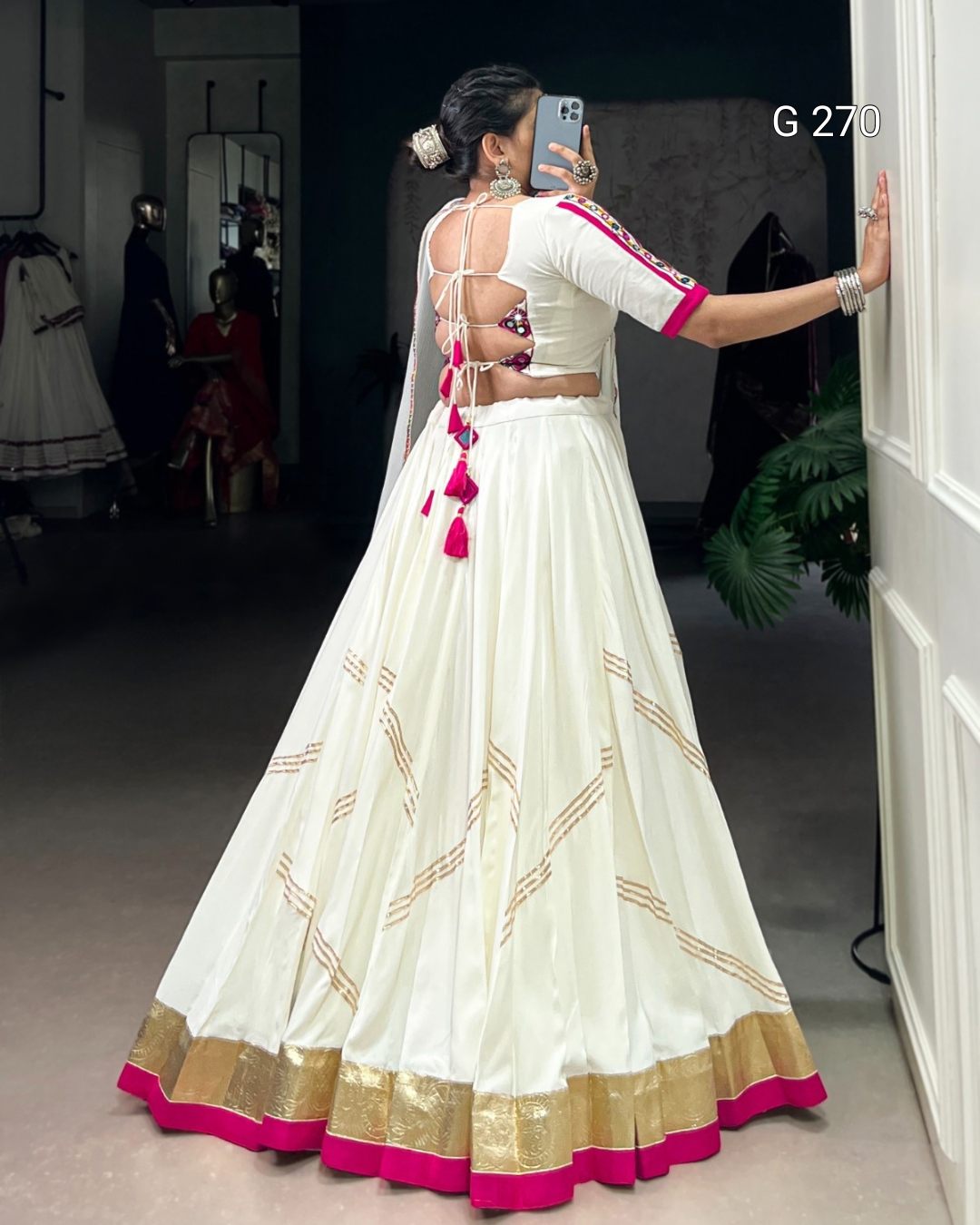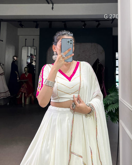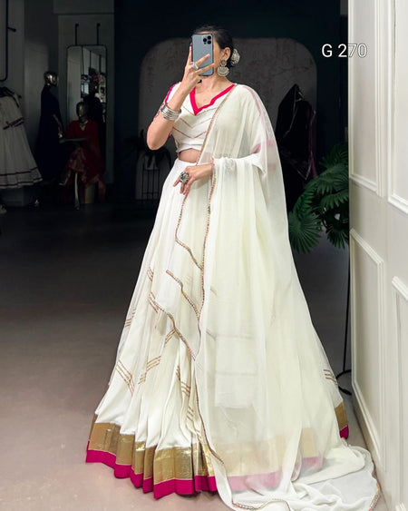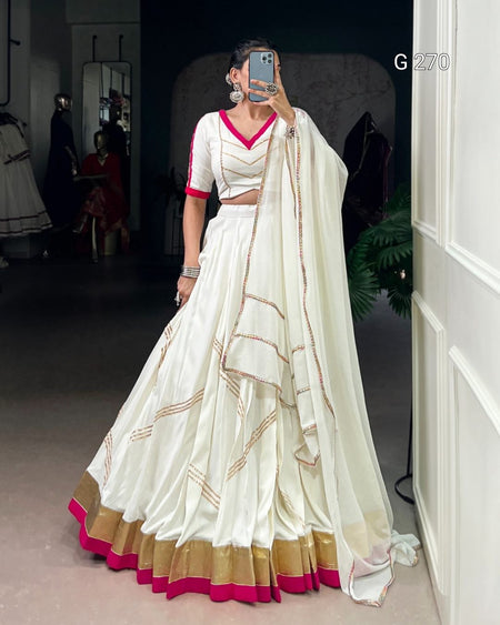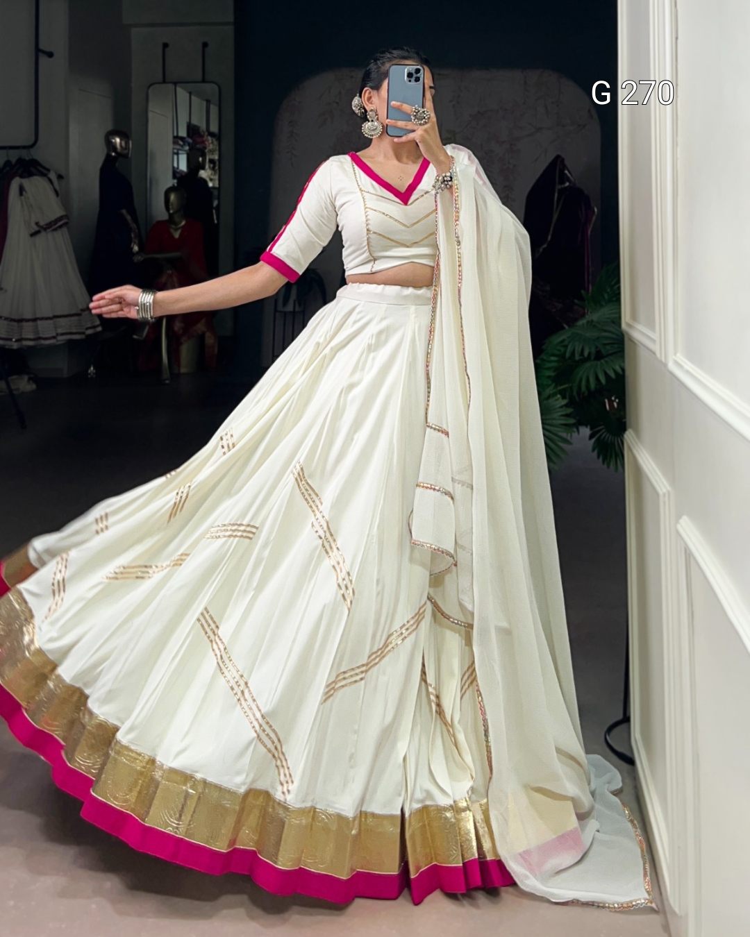 Embossed Design Pure Rayon Lehenga with Gota Patti Lace Touch Up – G 270 White