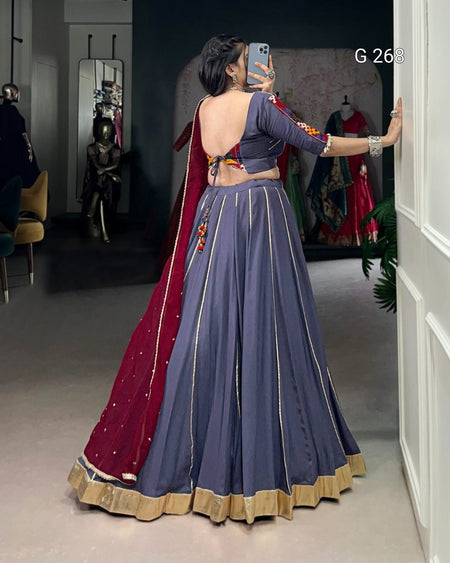 Embossed Design Pure Rayon Lehenga with Gotta Patti Lace Touch Up – G 268 Dark Blue