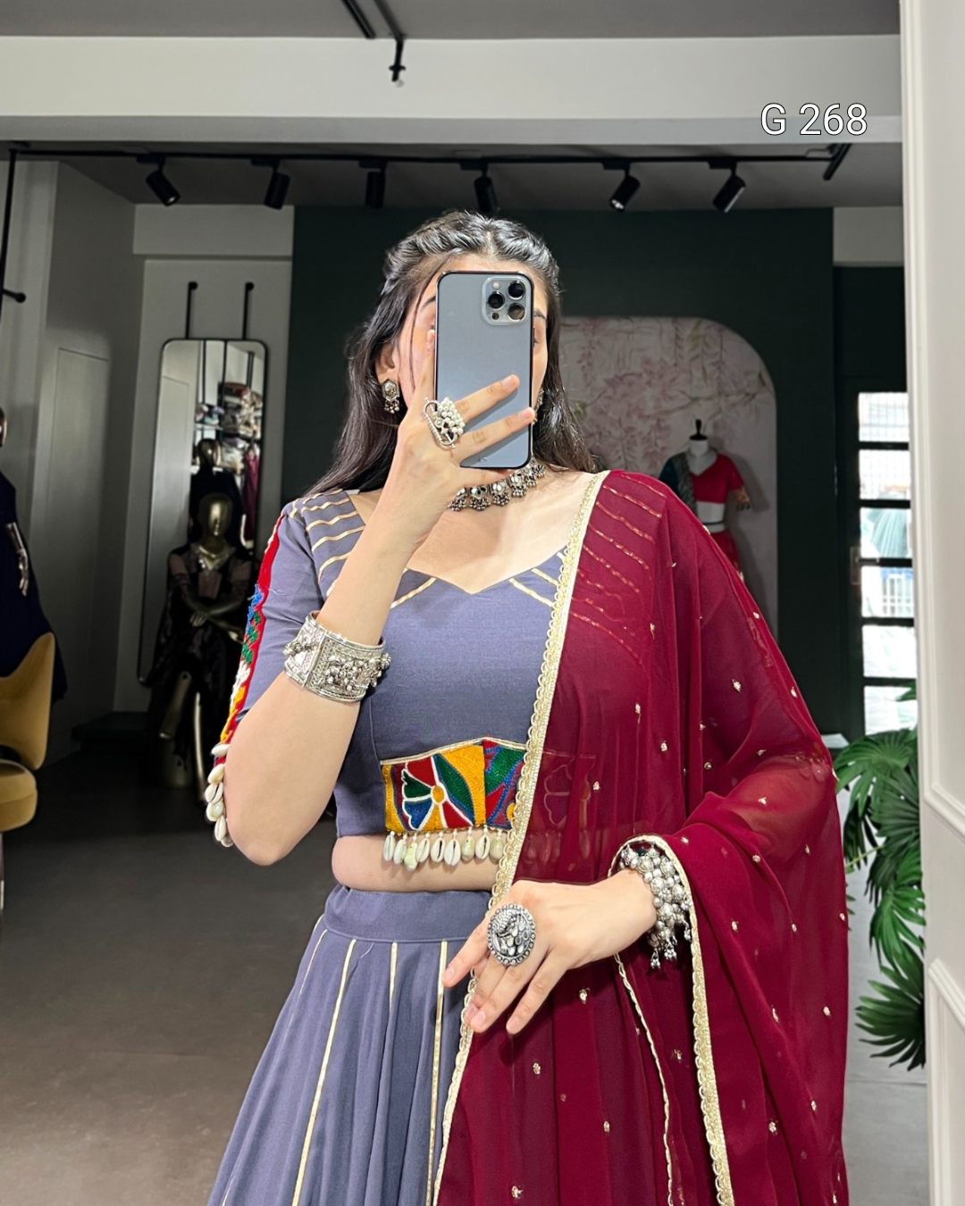 Work: Original Mirror Gamthi Work & Cowrie (Kodi) with Gotta Patti Lace Touch Up