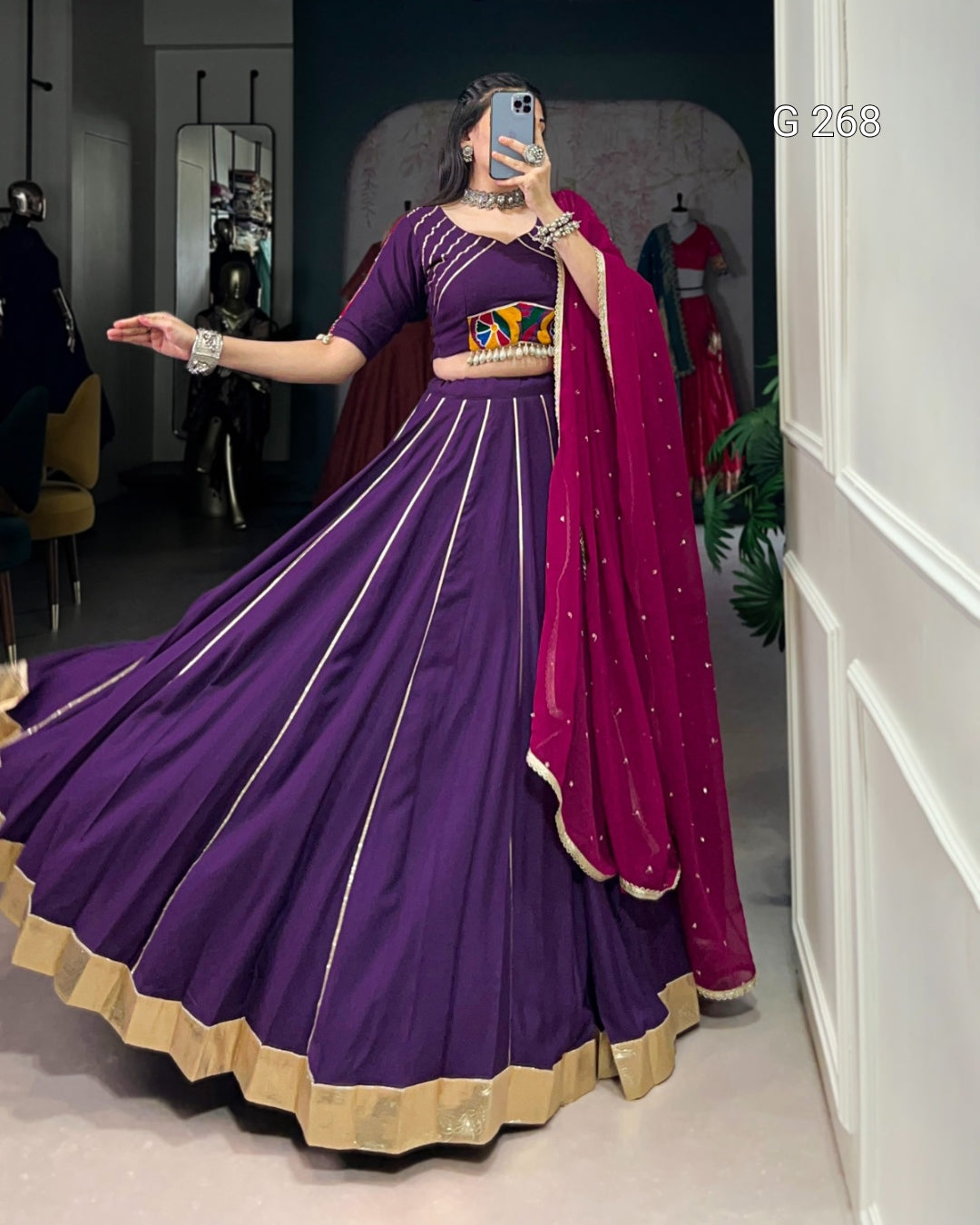 Embossed Design Pure Rayon Lehenga with Gotta Patti Lace Touch Up – G 268 Purple