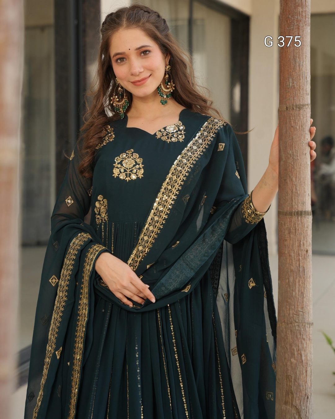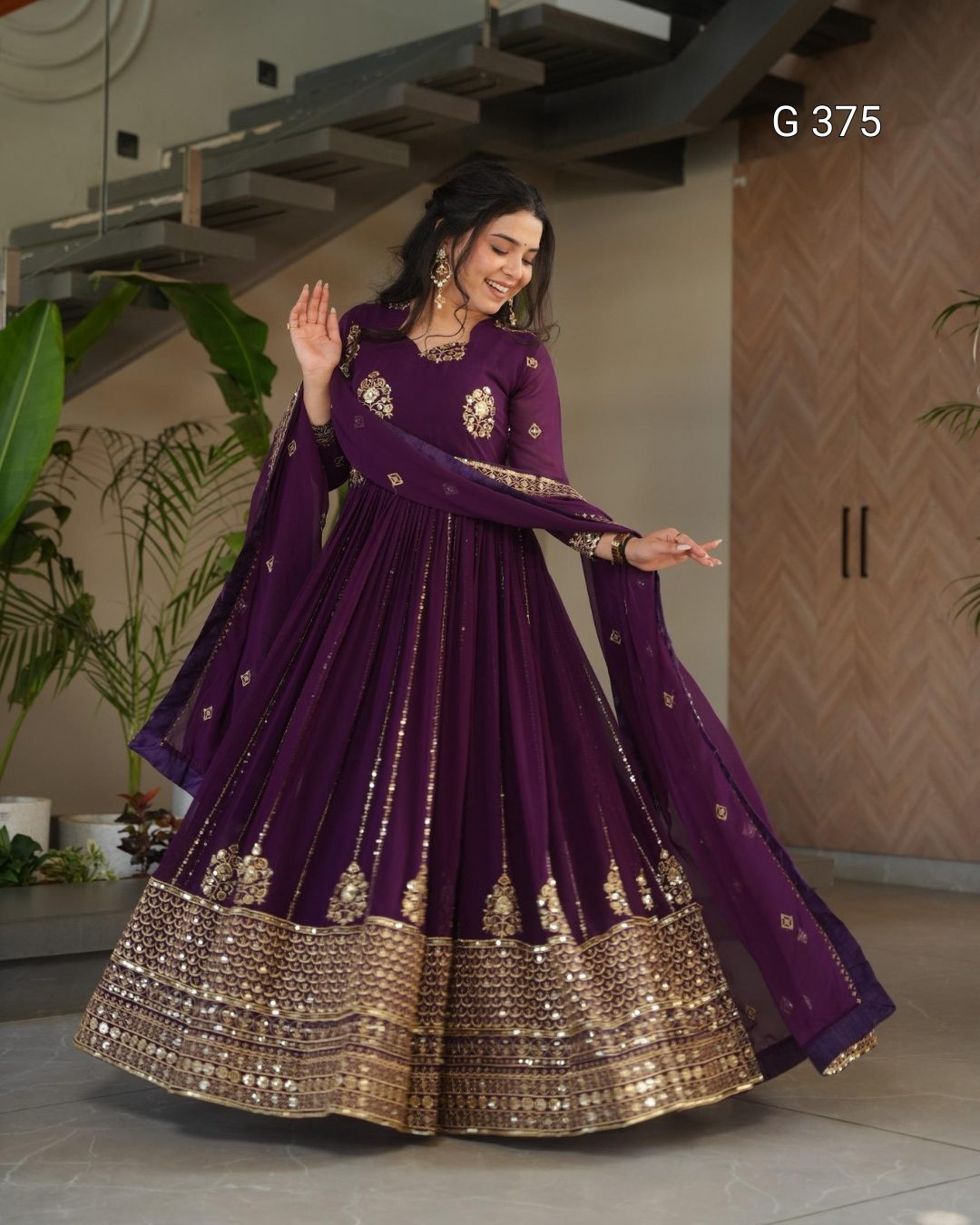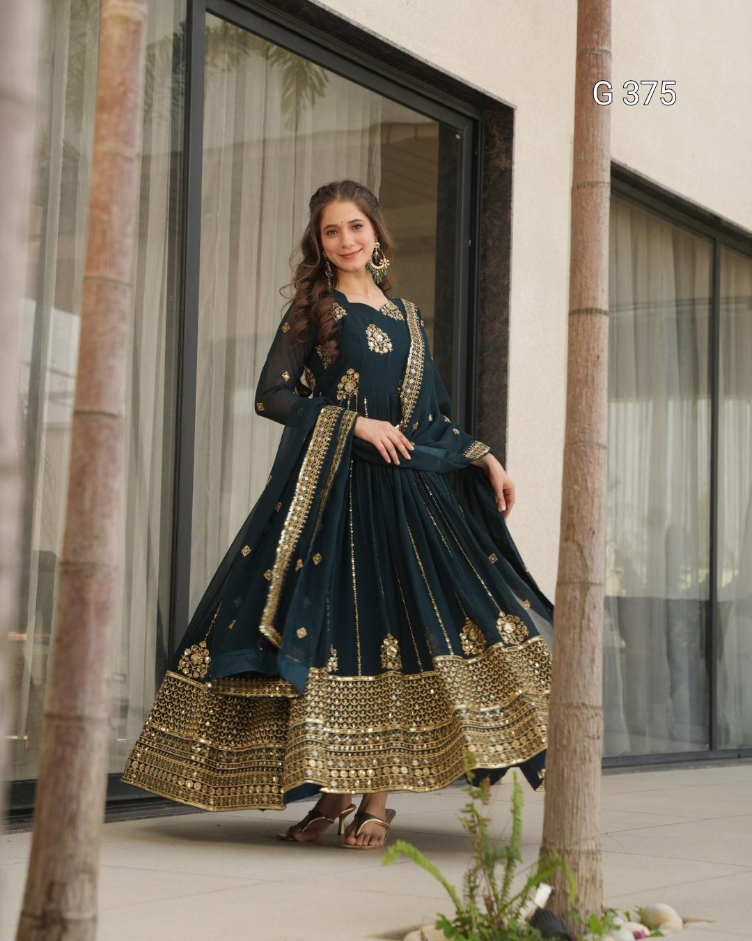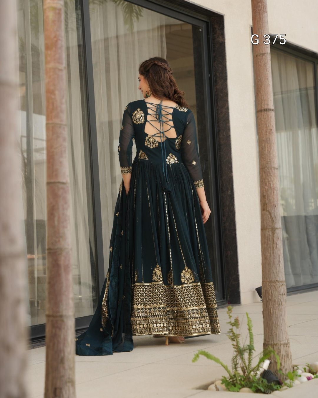Faux Blooming Gown with Zari & Sequins Embroidery – G 375