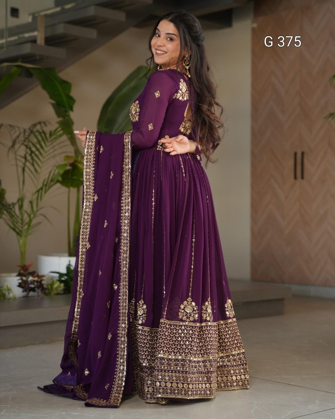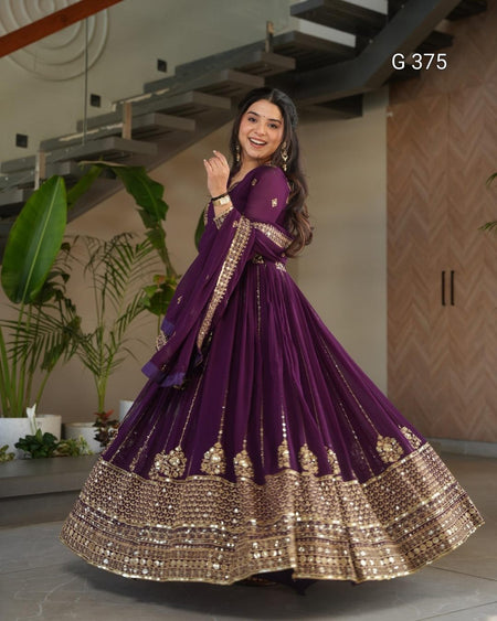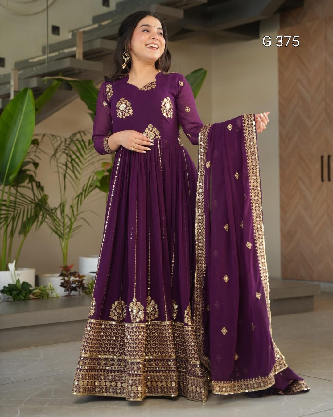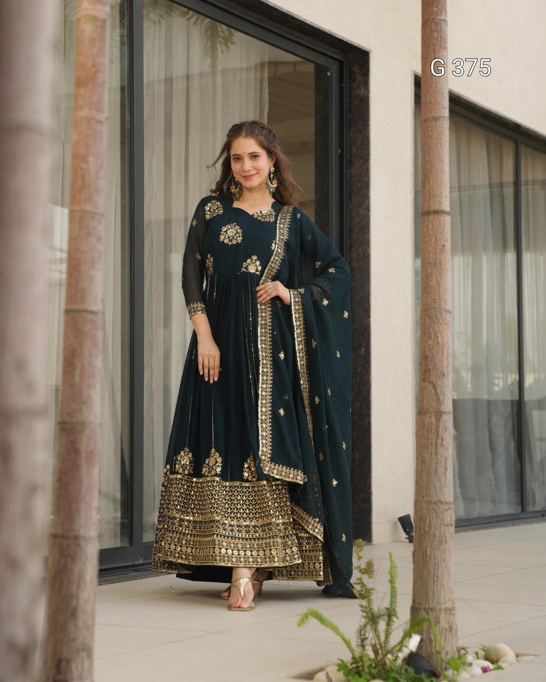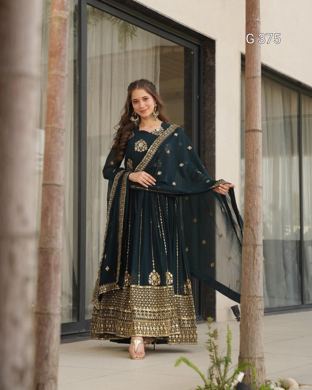 Faux Blooming Gown with Zari & Sequins Embroidery – G 375