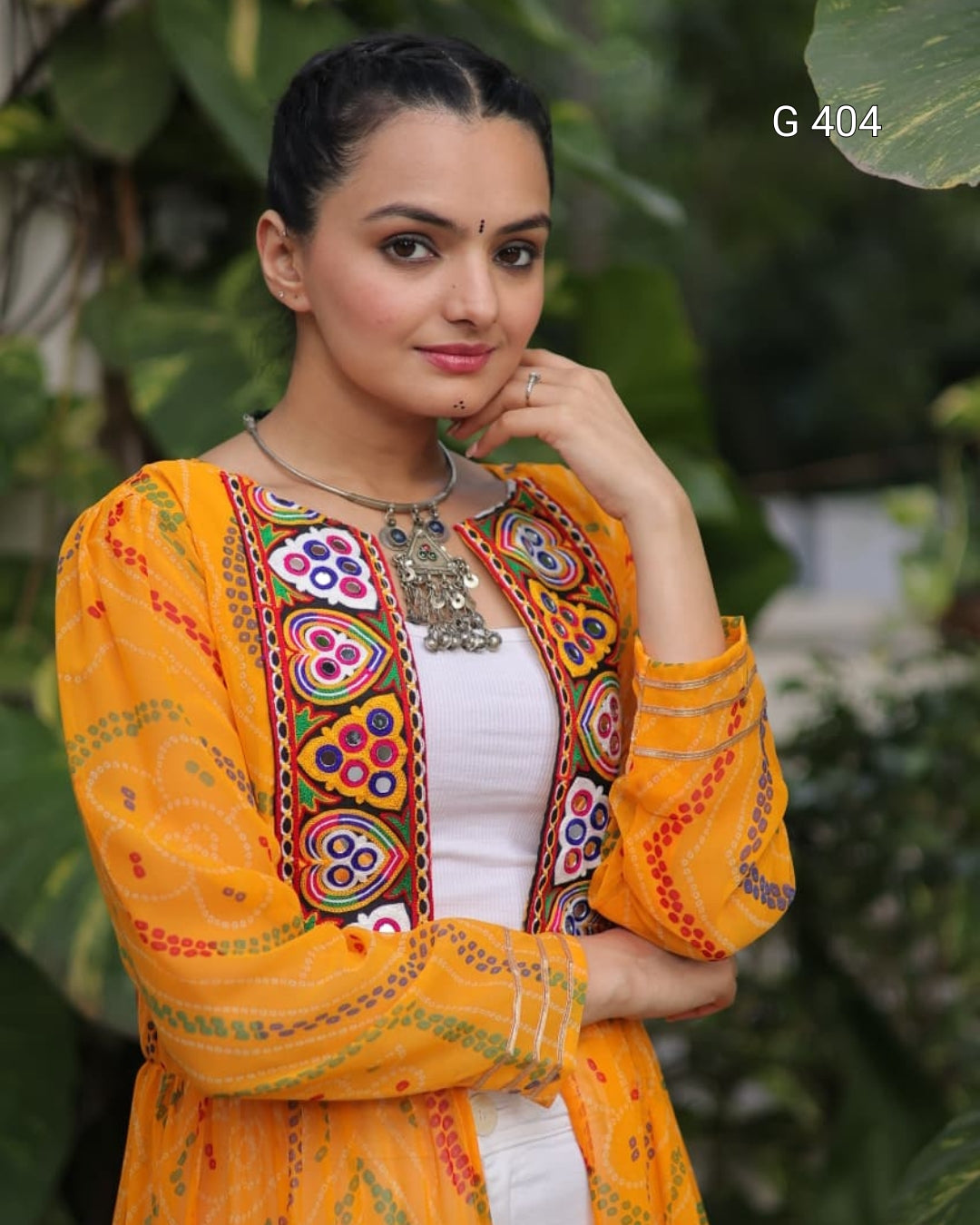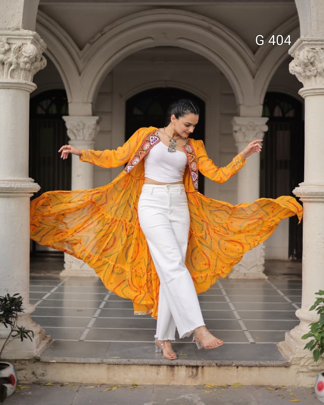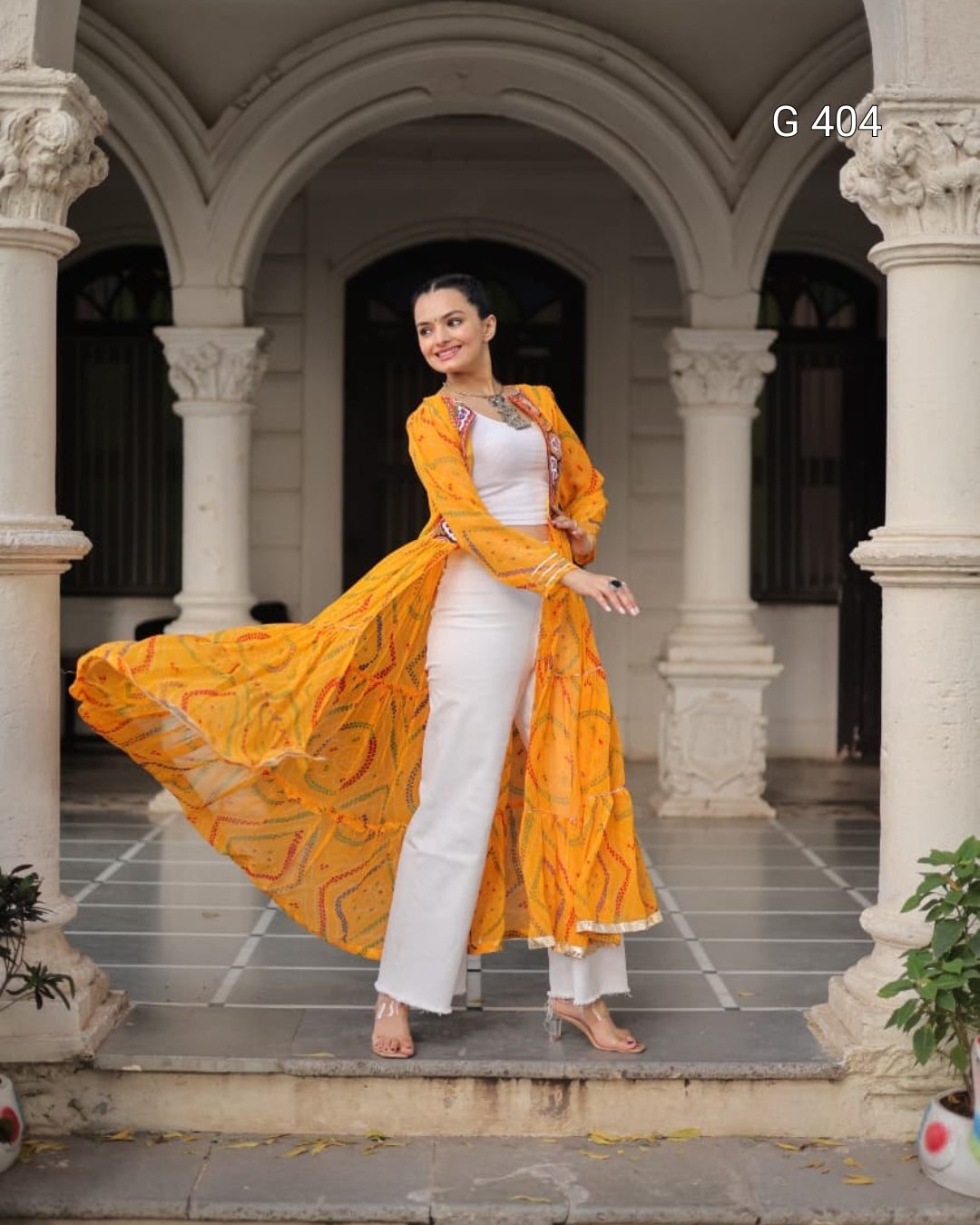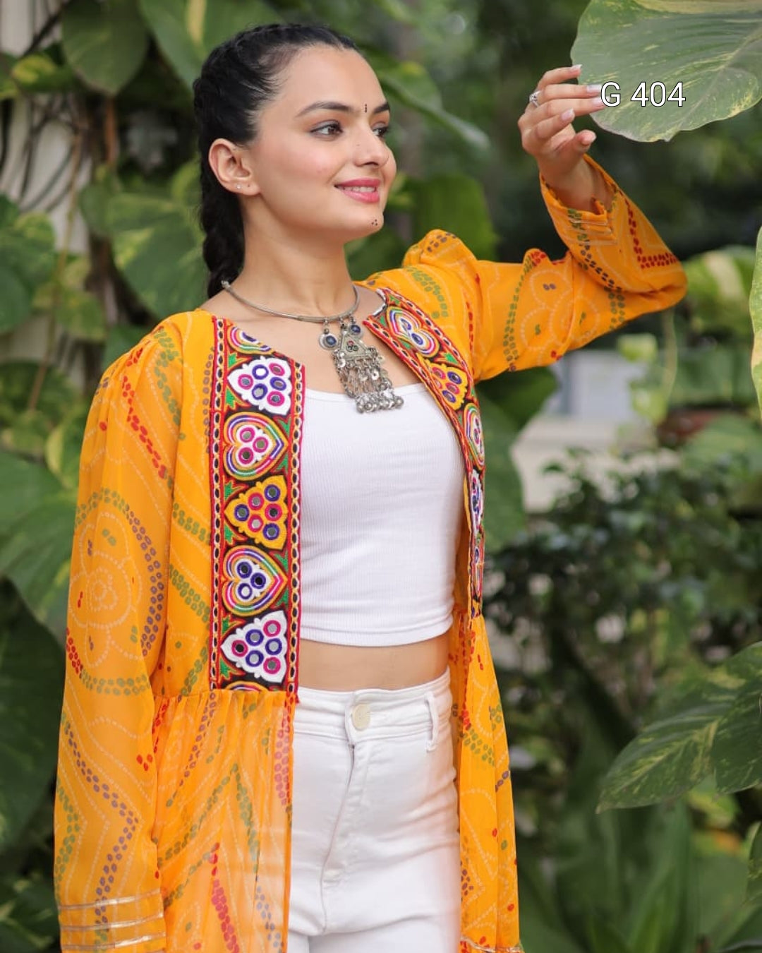 Faux Georgette Shrug Kurti with Bandhani Print – G 404 Yellow