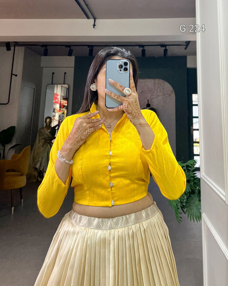 Floral Print Dola Silk Lehenga with Sequins & Zari Border – G 224 Yellow