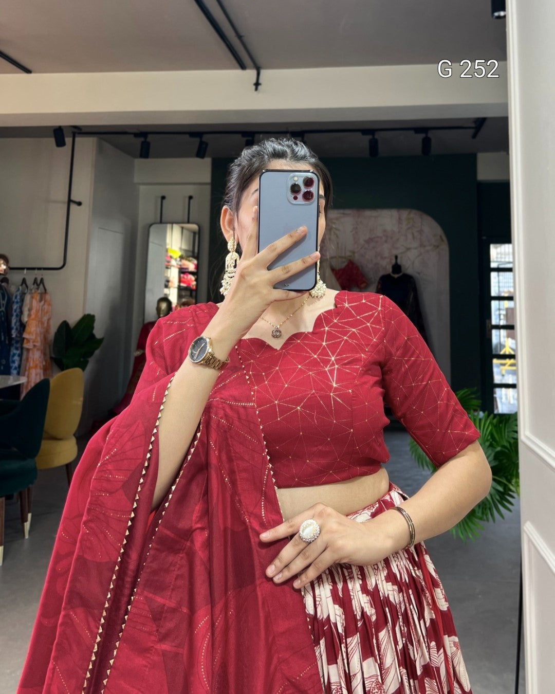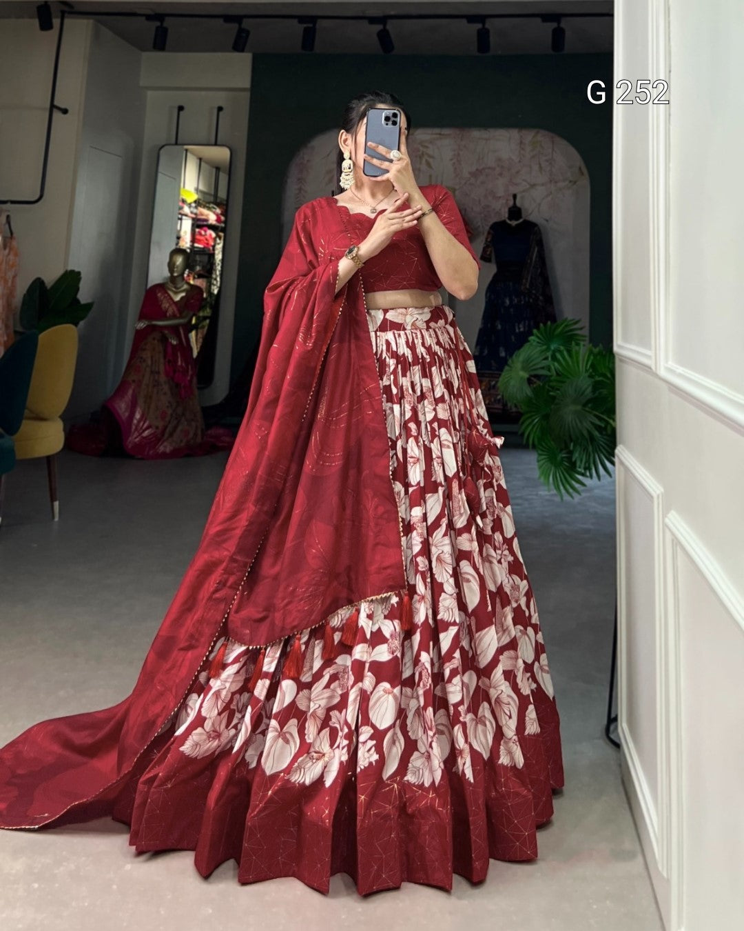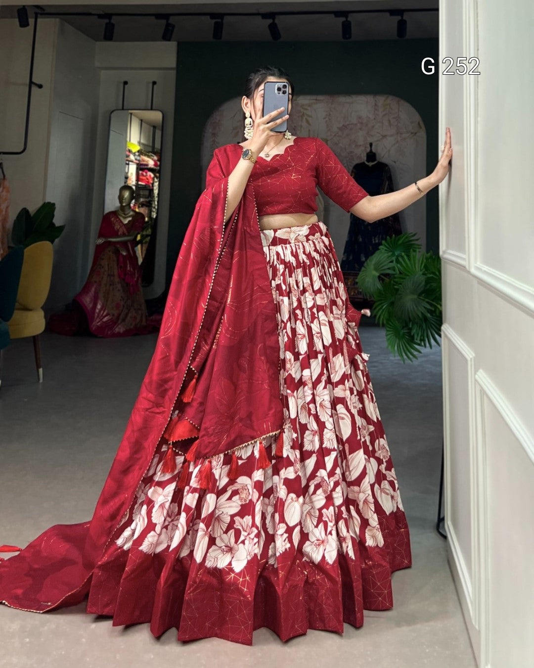 Floral Print Tussar Silk Lehenga with Foil Print – G 252 Red