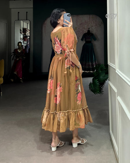 Floral Printed Georgette Frock – G 77 Brown