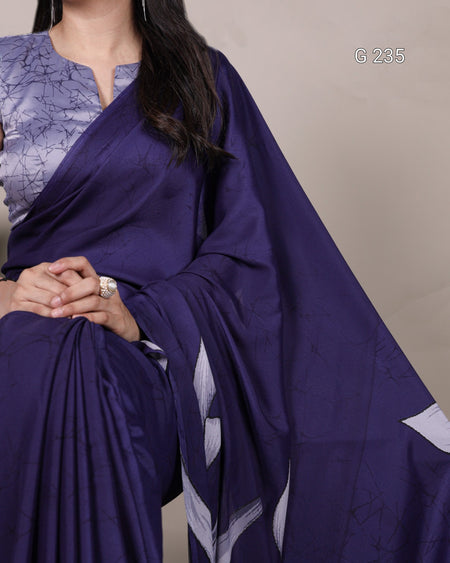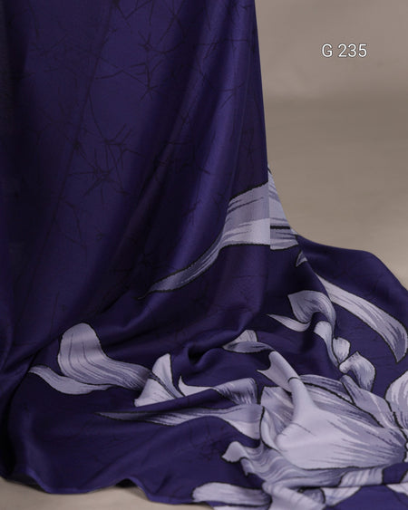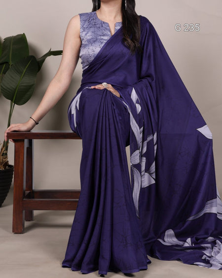 Floral Printed Satin Silk Saree – G 235 Navy Blue