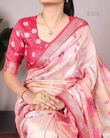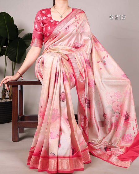 Floral Printed Tussar Silk Saree with Viscose Border – G 213 Peach