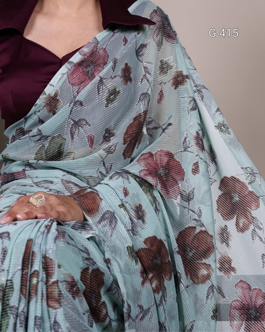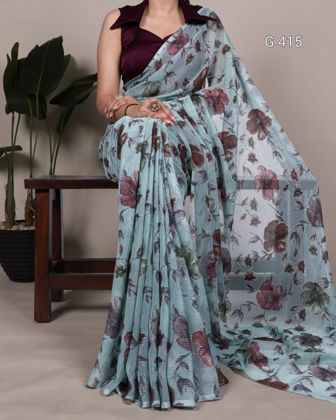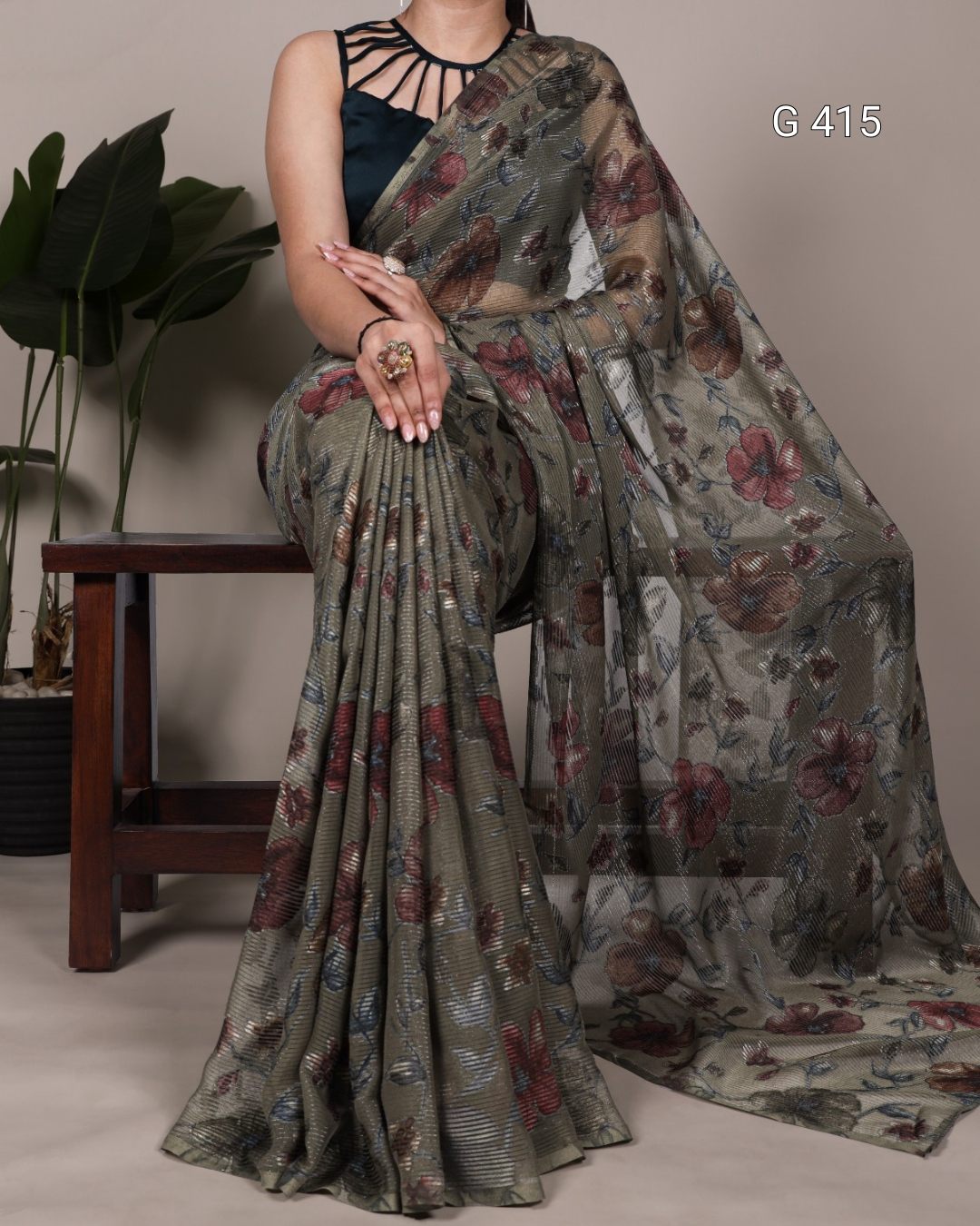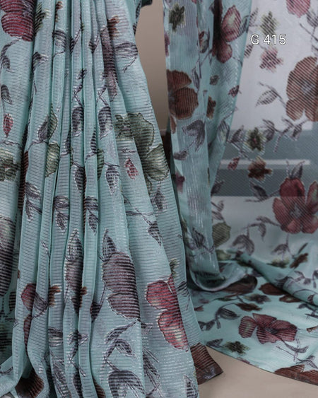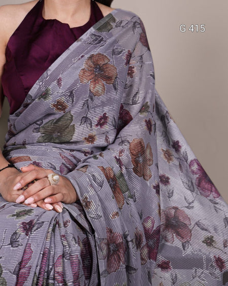 Floral Viscose Brasso Saree with Plain Silk Blouse – G 415