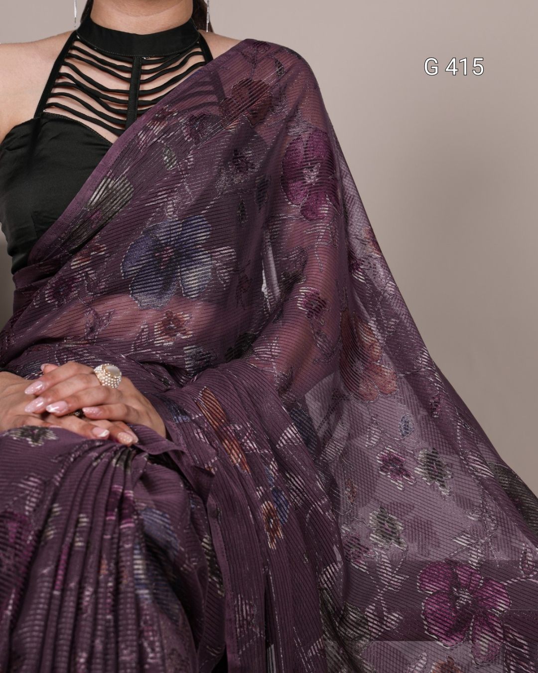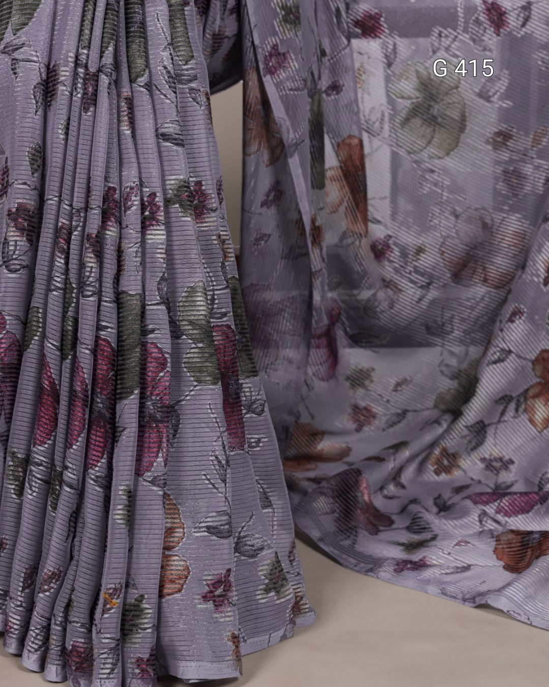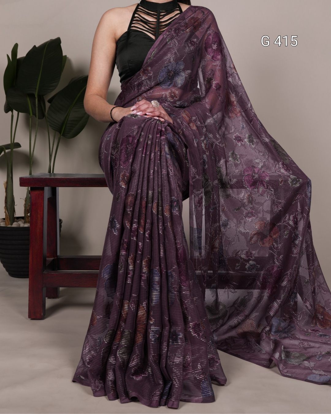 Floral Viscose Brasso Saree with Plain Silk Blouse – G 415