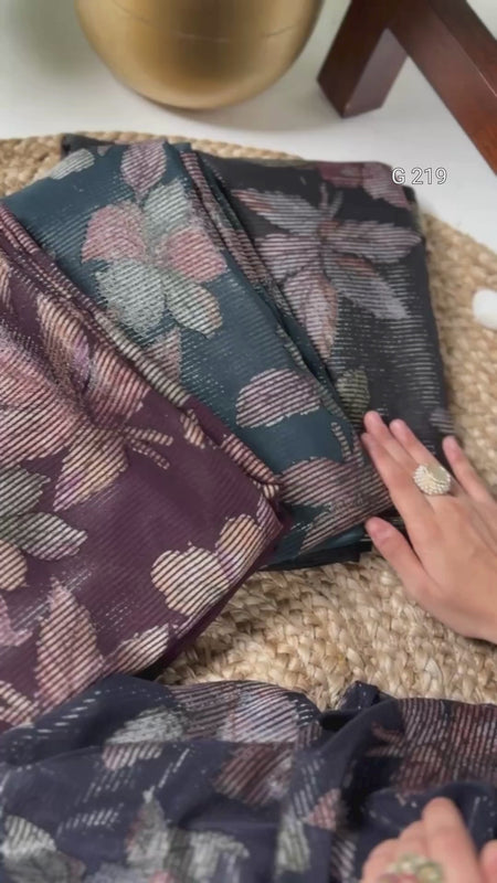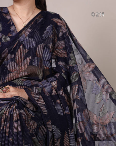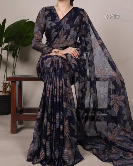 Floral Viscose Lurex Brasso Saree – G 219 Navi Blue