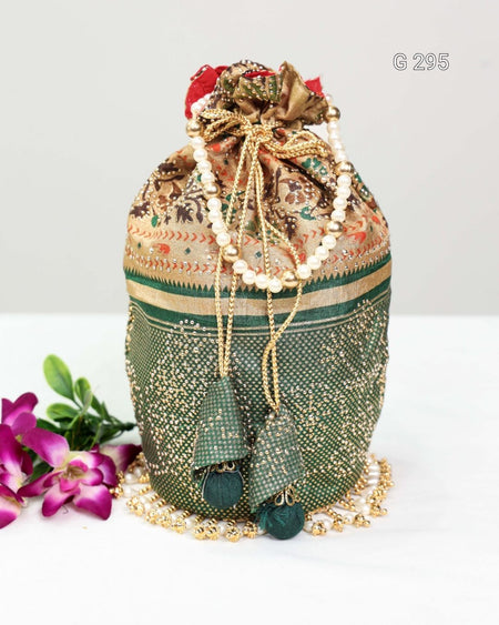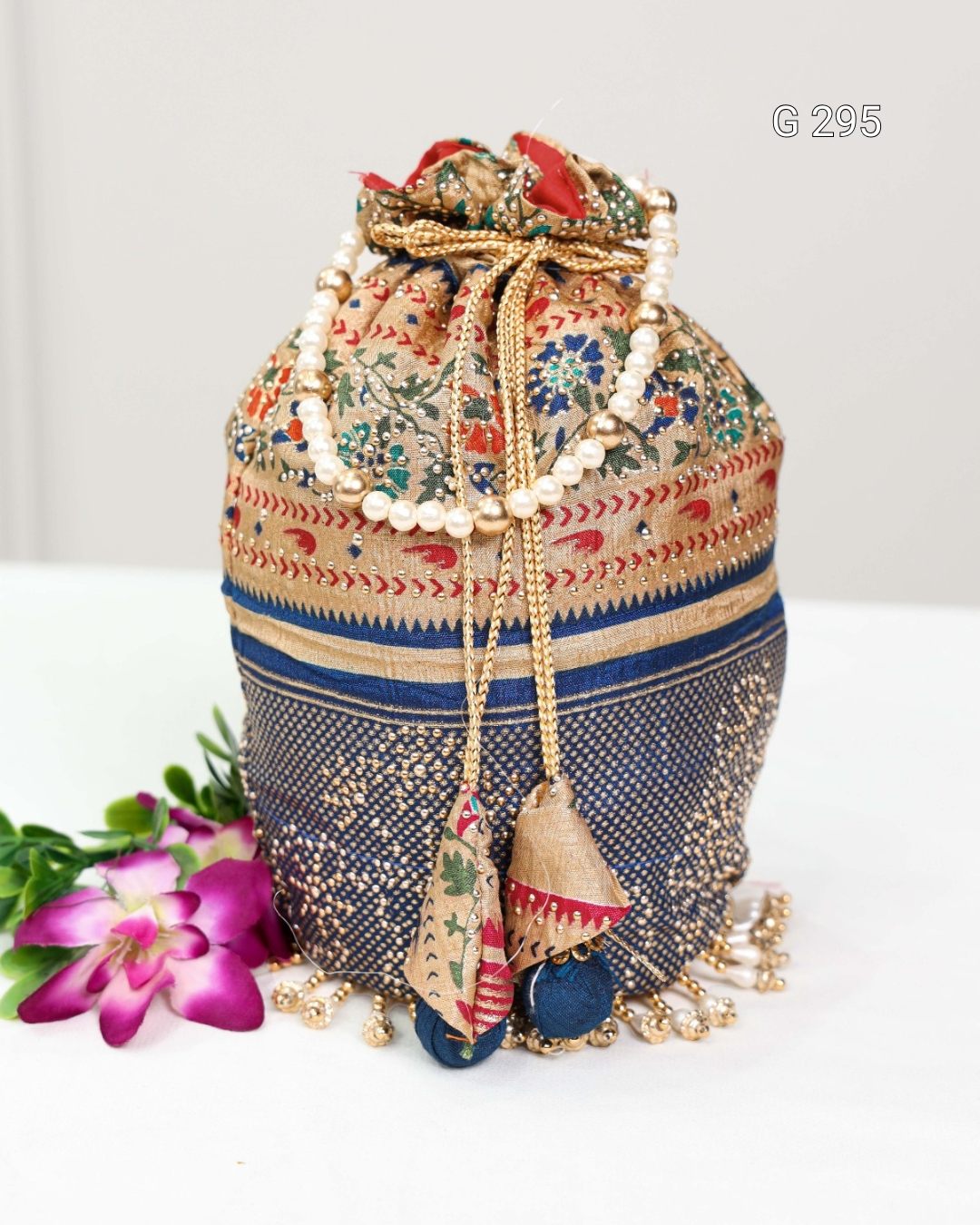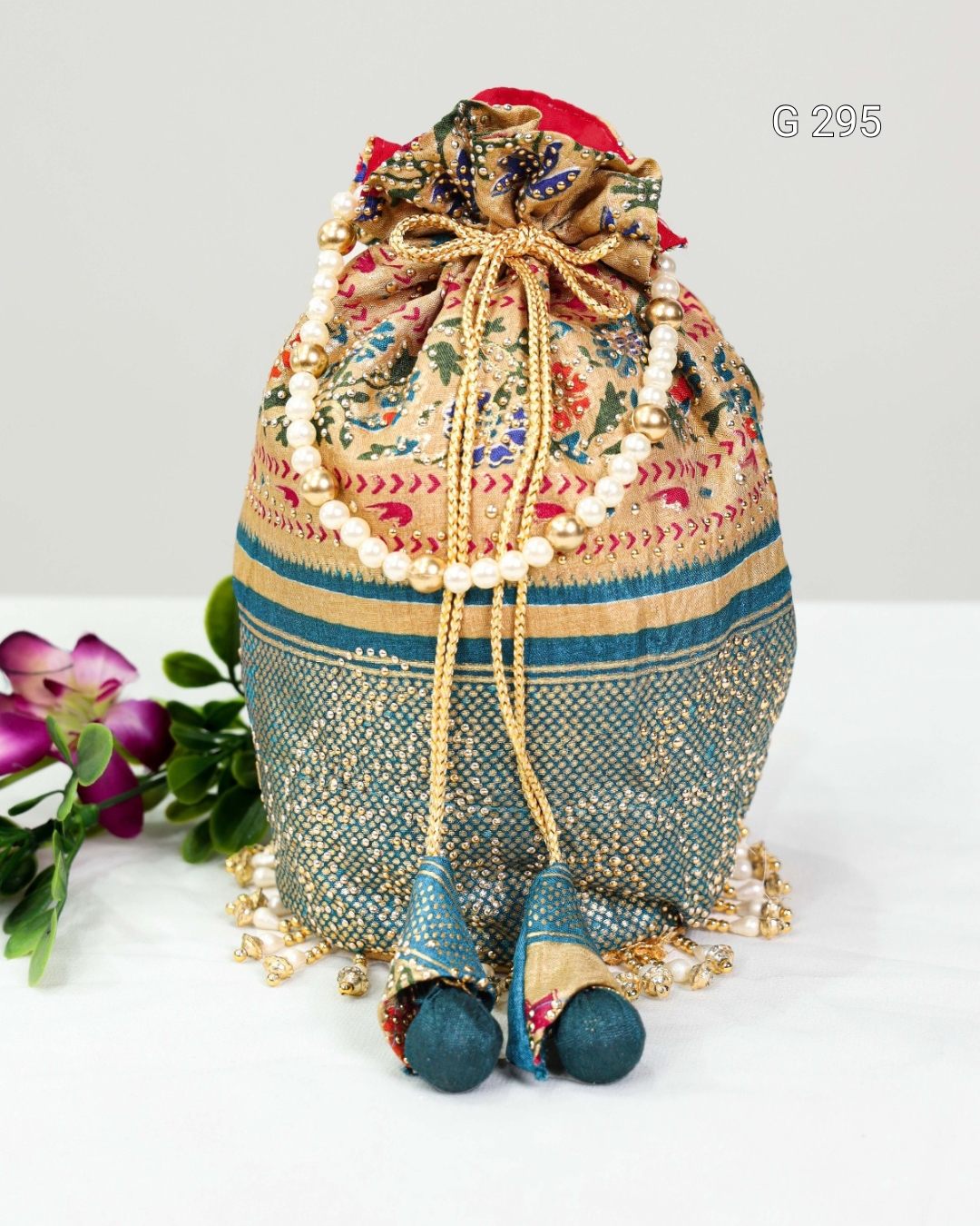Work: Foil Print With Embellish Stone Work And Lace Border Also Comes With Moti Handle