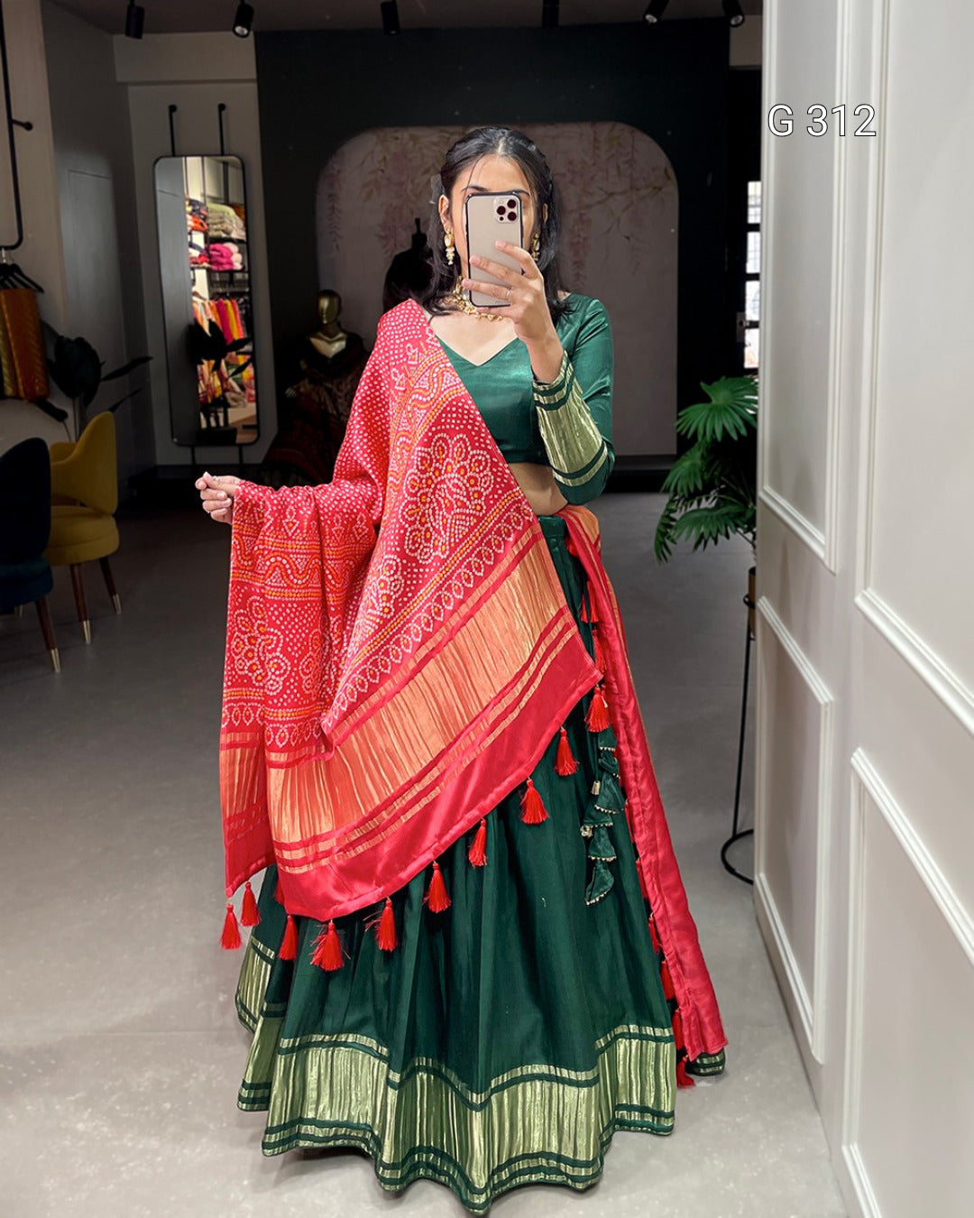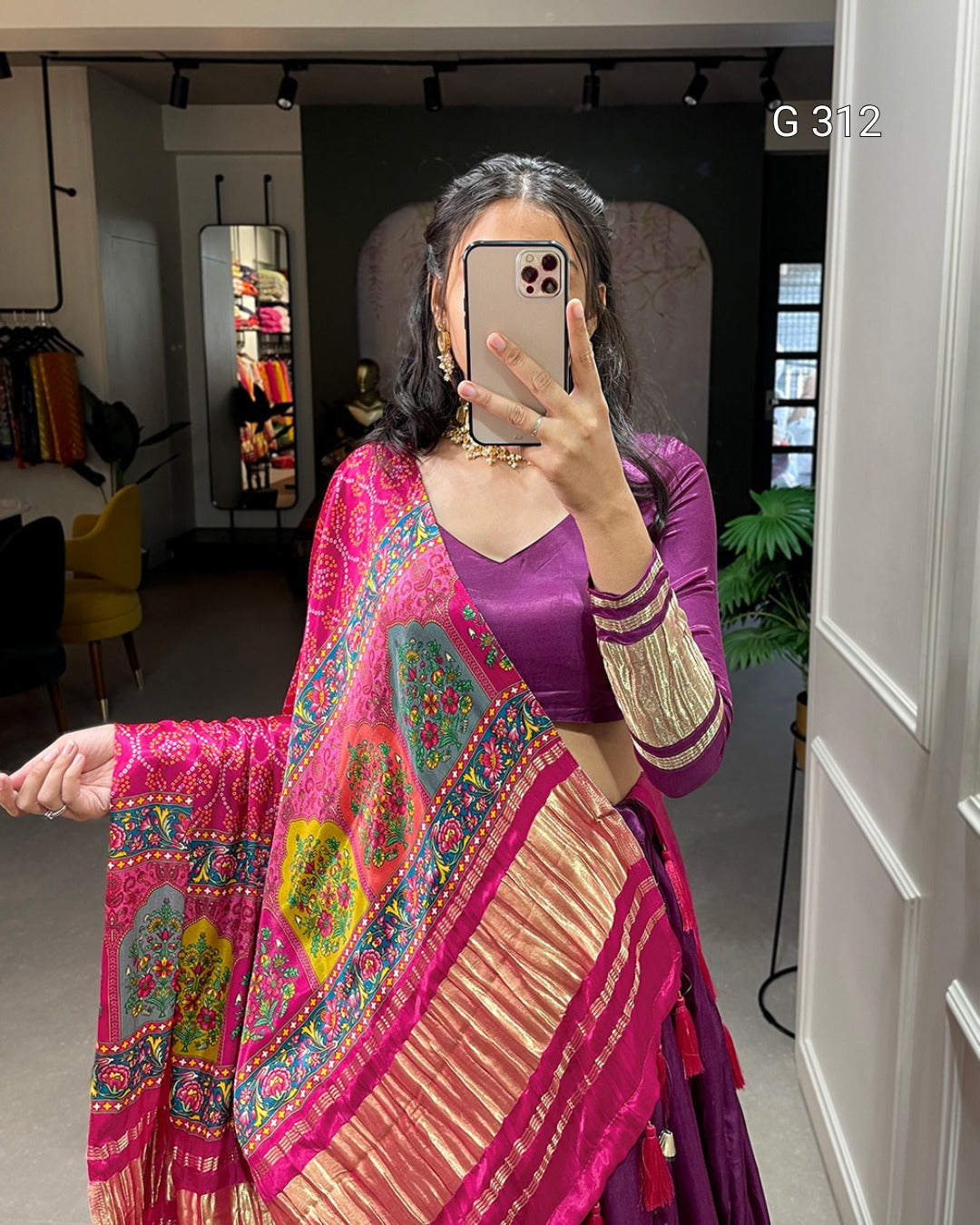 Gaji Silk Lehenga with Dyeing & Lagdi Patta Work – G 312