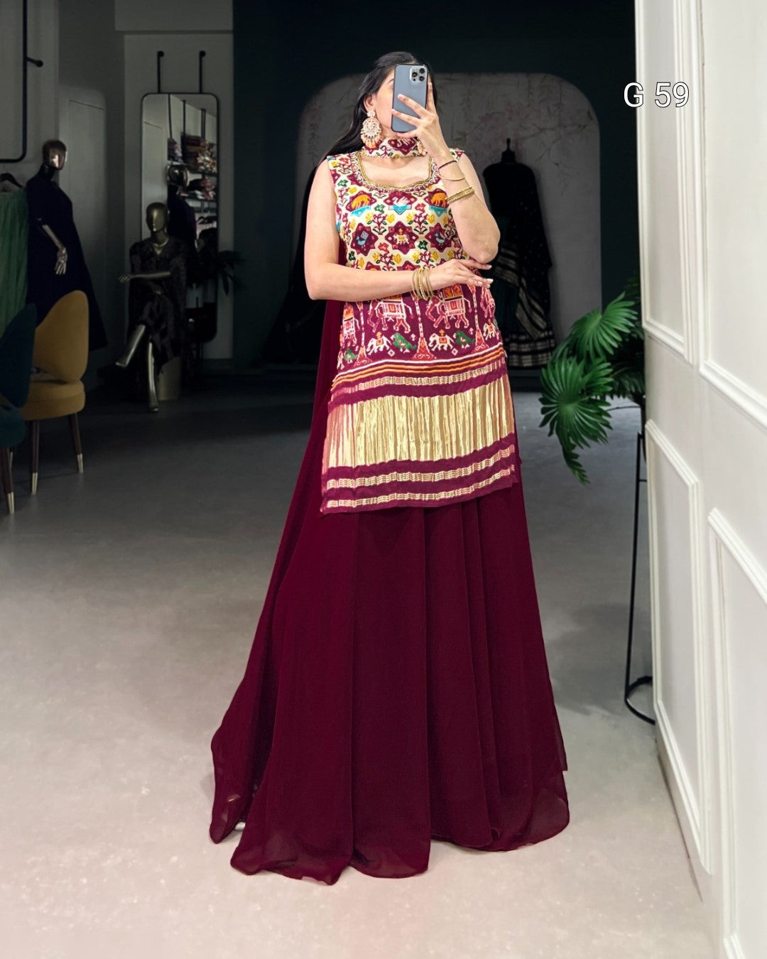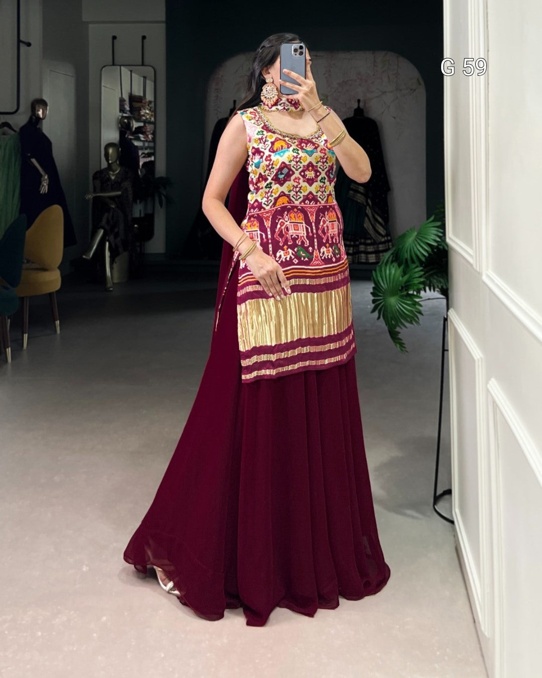 Gaji Silk Top with Printed Handwork & Georgette Plazo – G 59 Off White