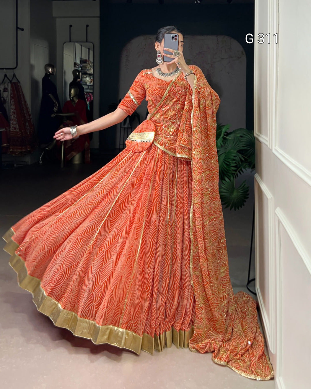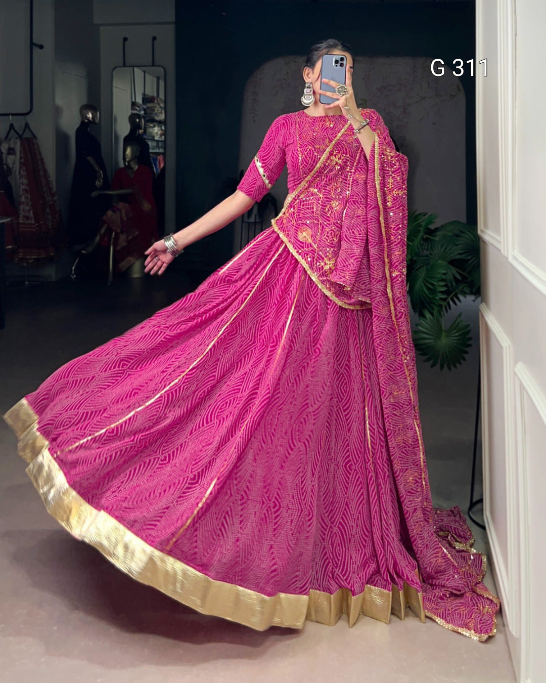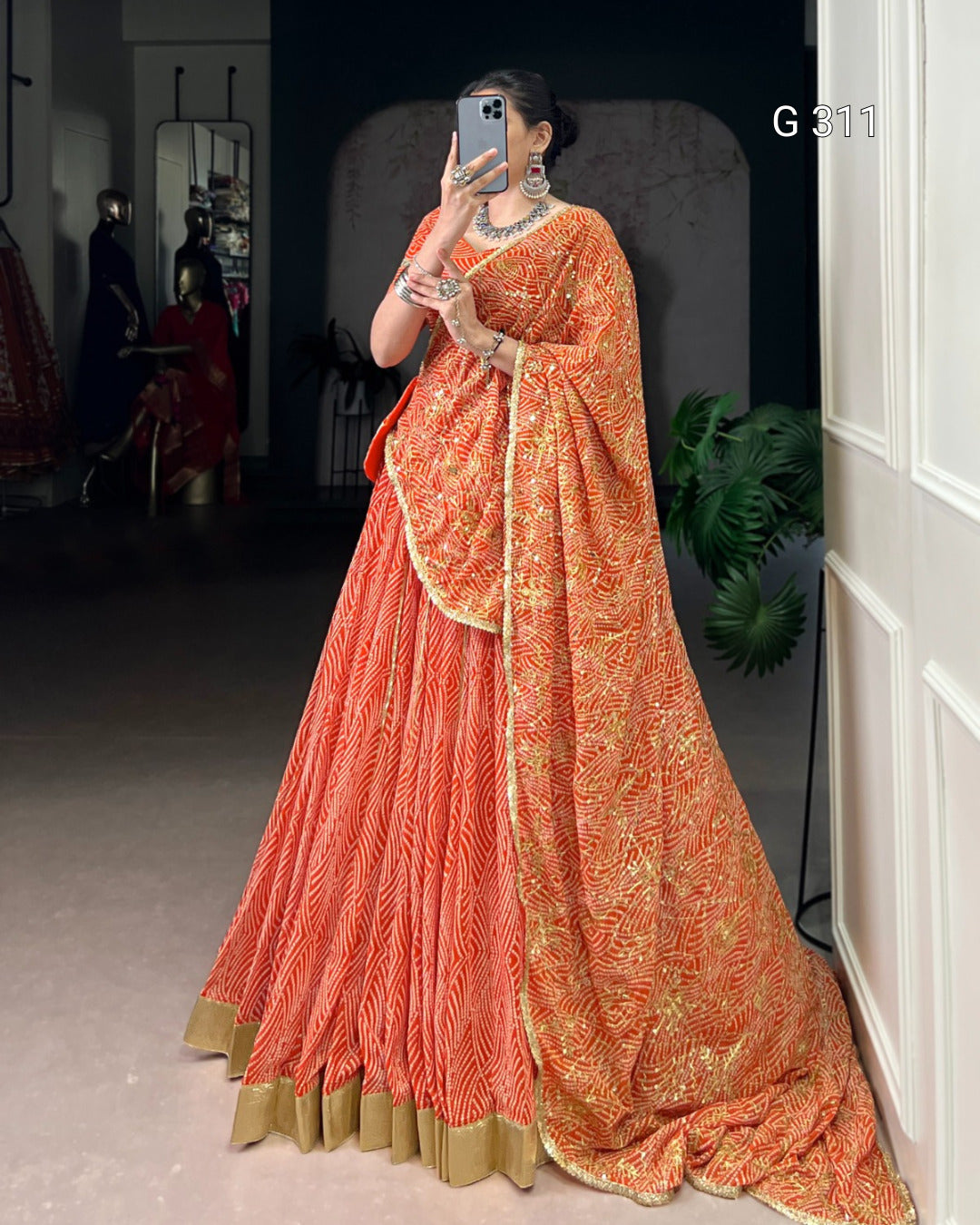 Georgette Bandhej Lehenga with Gota Patti & Mirror Work – G 311
