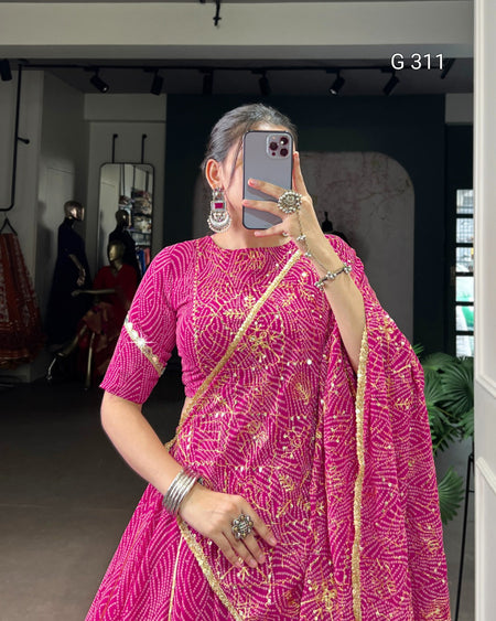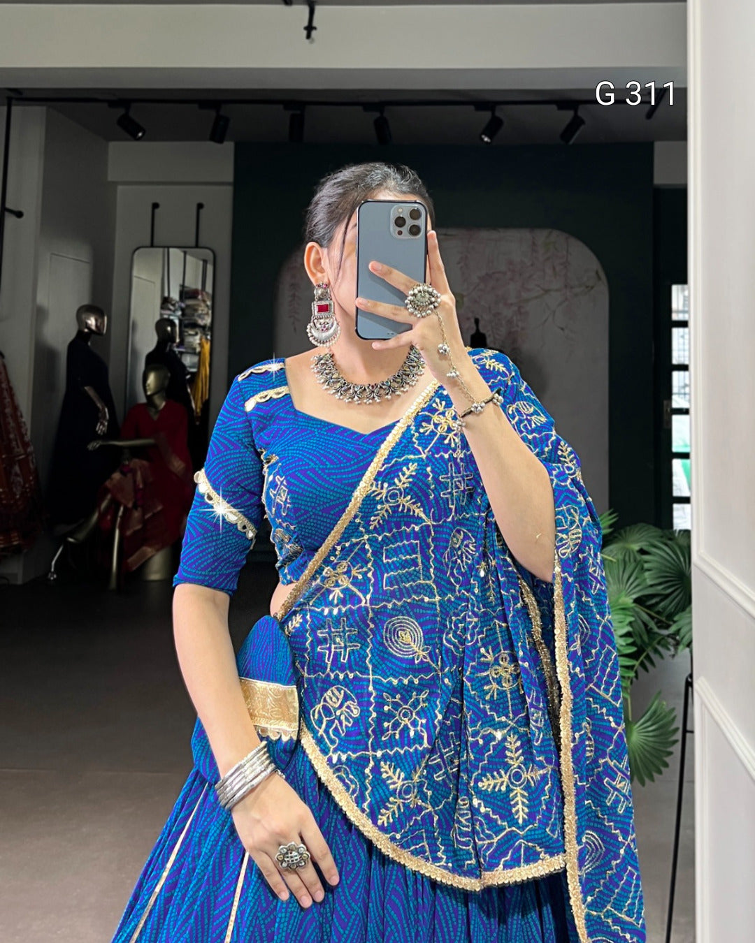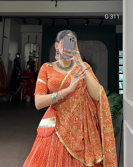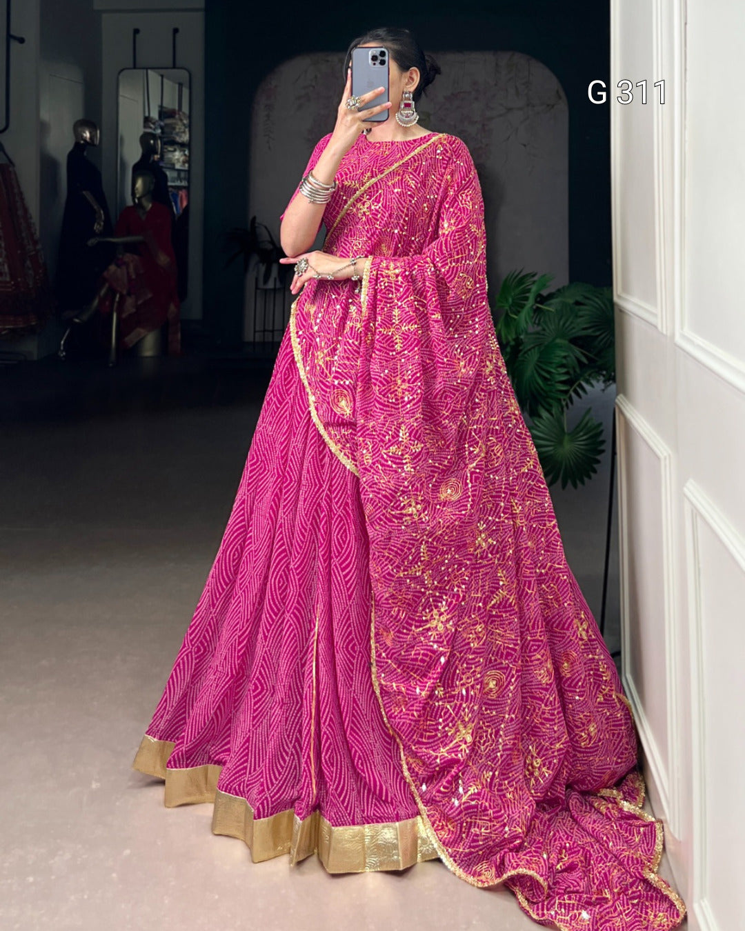 Georgette Bandhej Lehenga with Gota Patti & Mirror Work – G 311