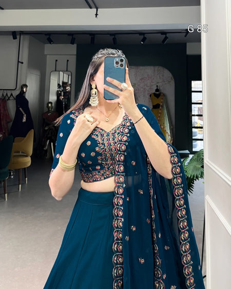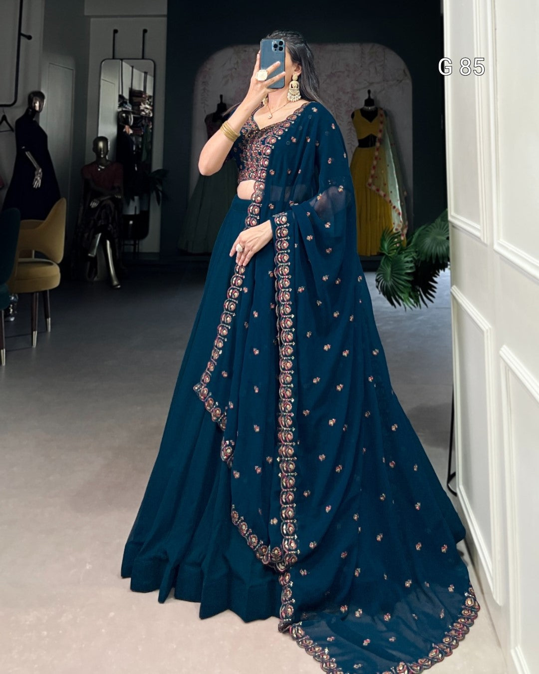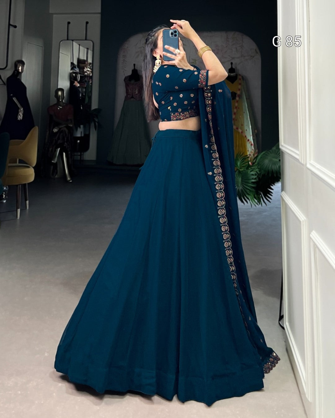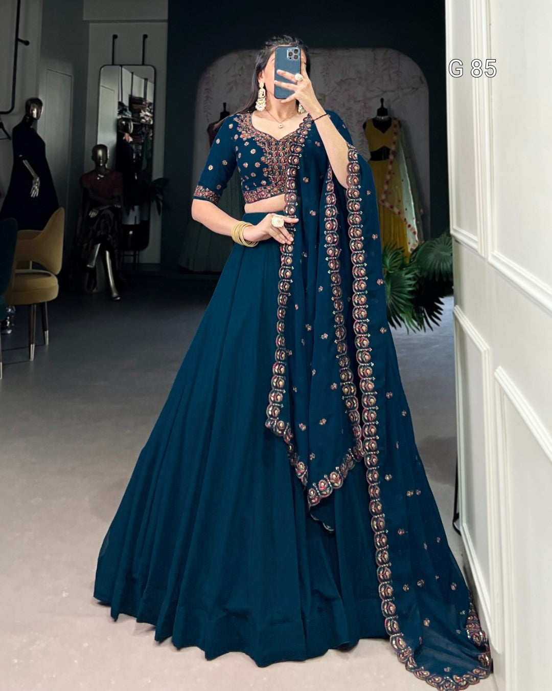 Georgette Lehenga with Sequins & Thread Embroidery Work – G 85 Firozi
