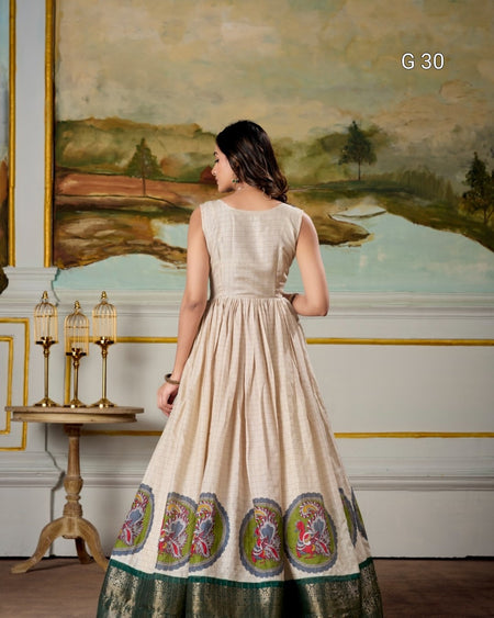 Green Dola Silk Gown with Kalamkari Print & Zari Weaving Border – G 30 Green