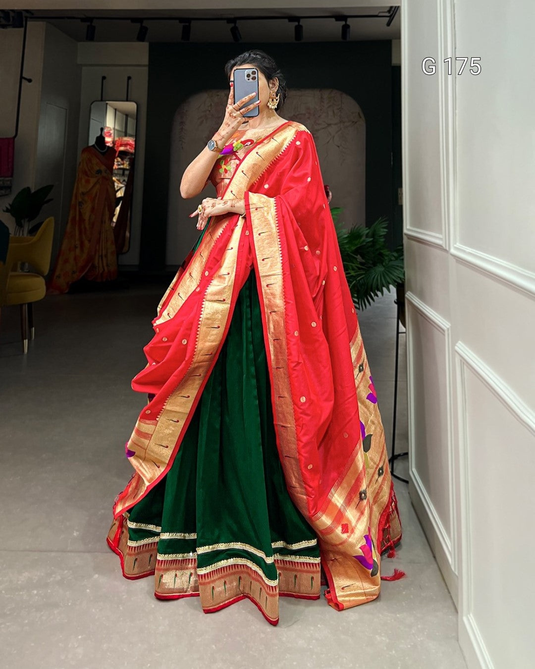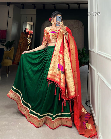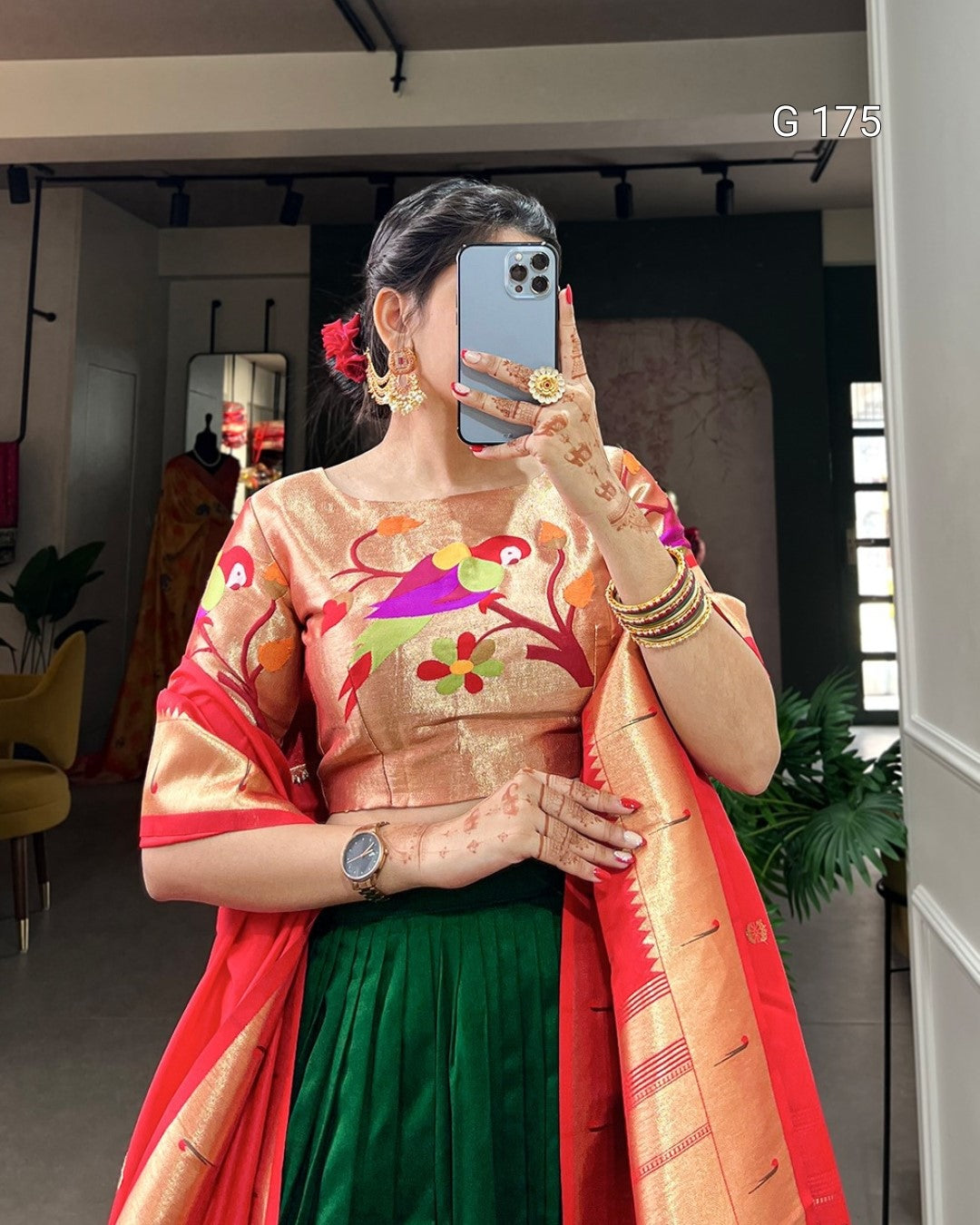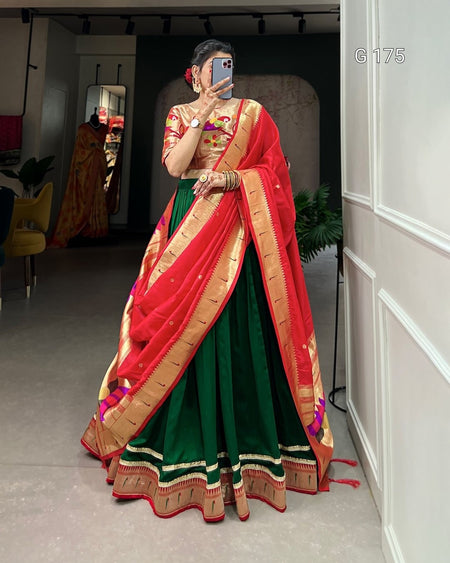 Green Vichitra Silk Lehenga with Paithani Lace Border and Zari Weaving Dupatta – G 175 Green