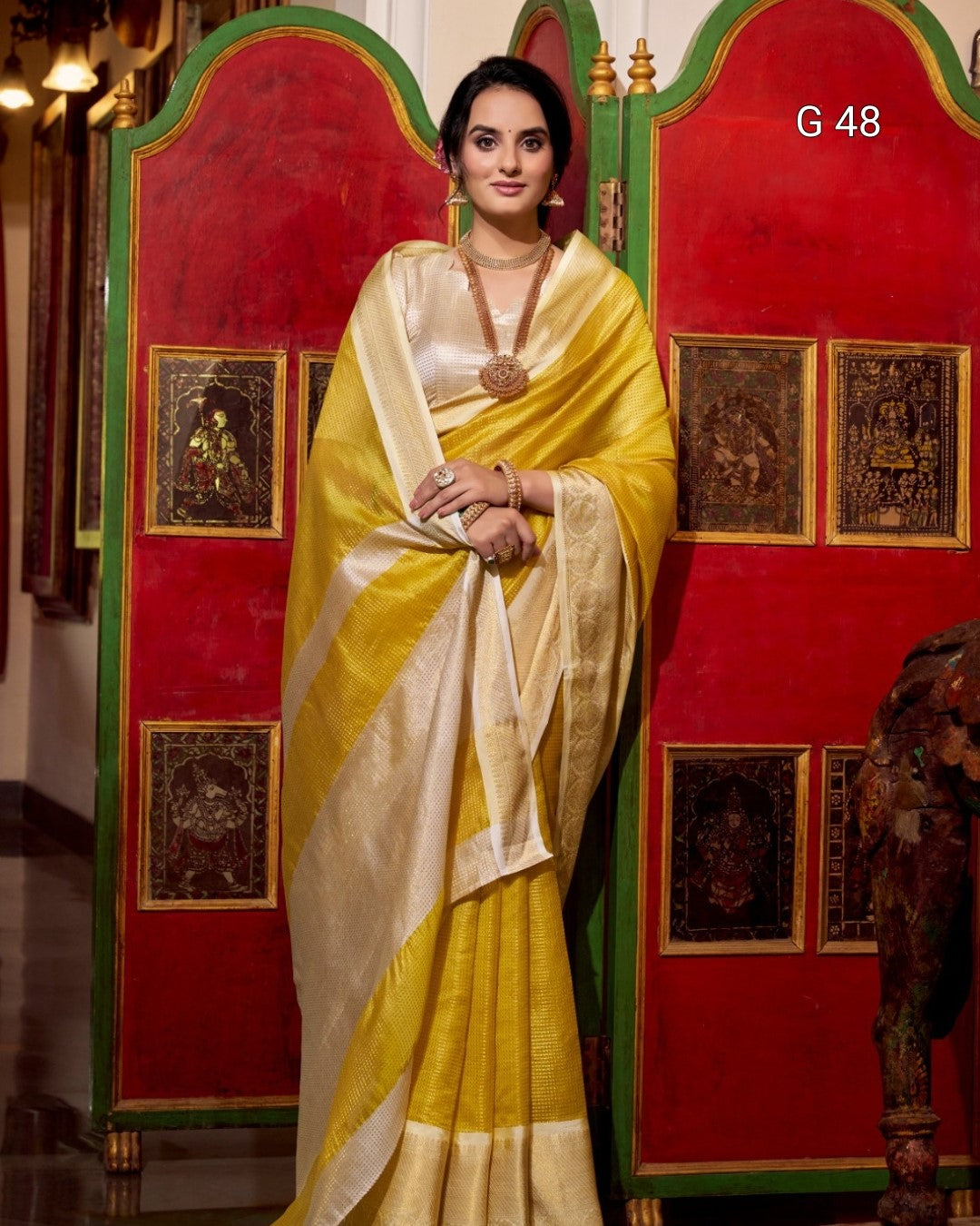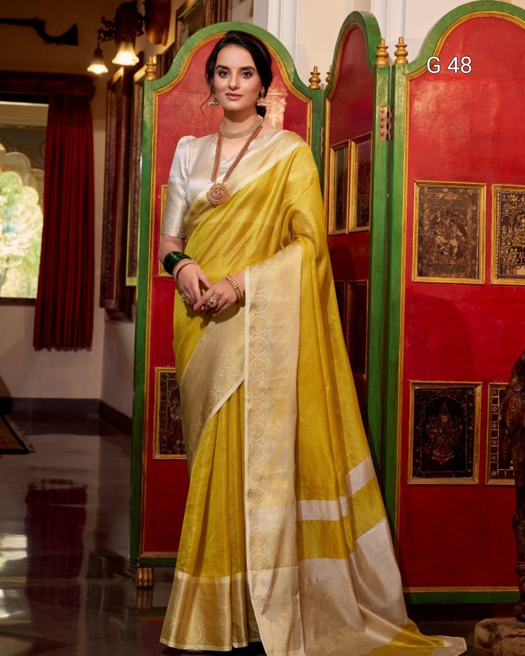 Jacquard Chex Saree with Zari Weaving Work – Yellow