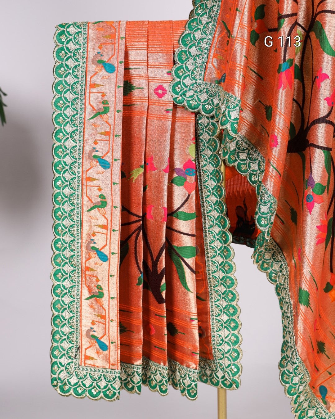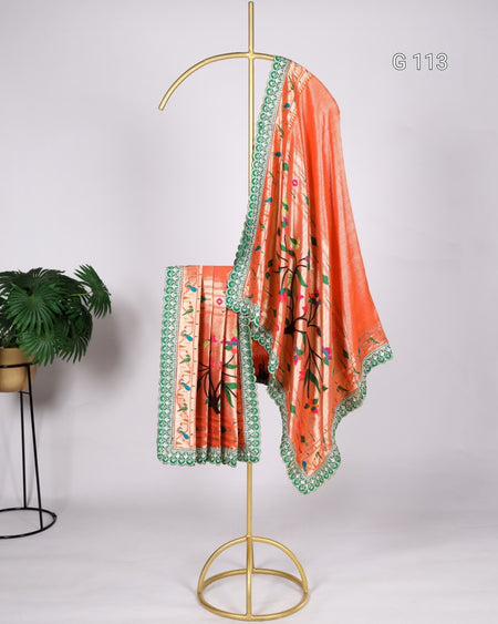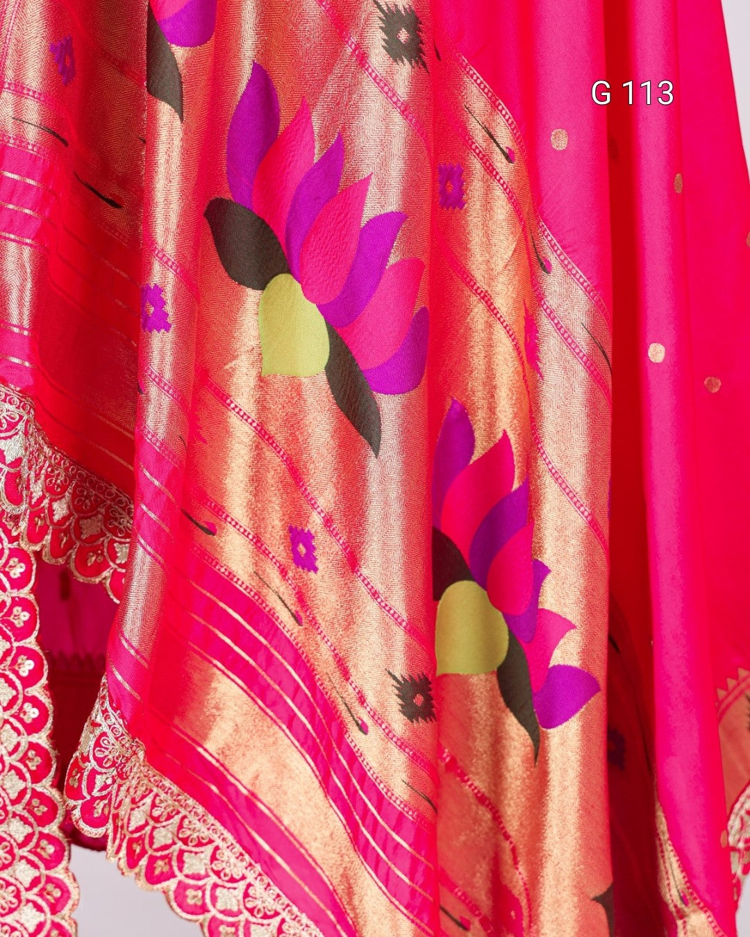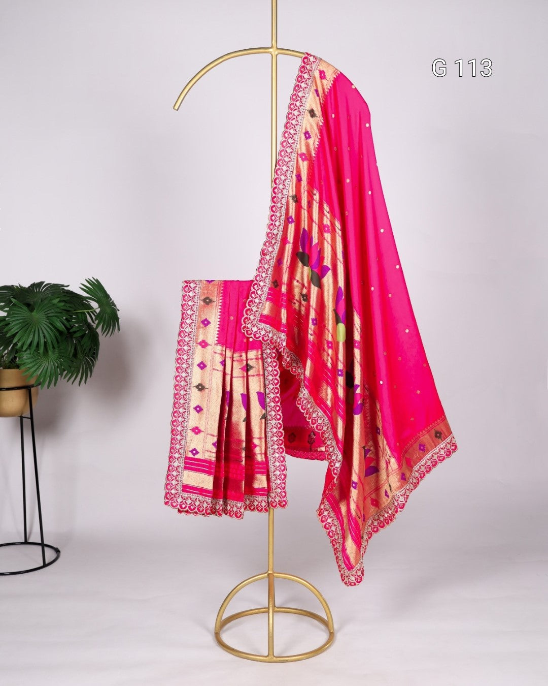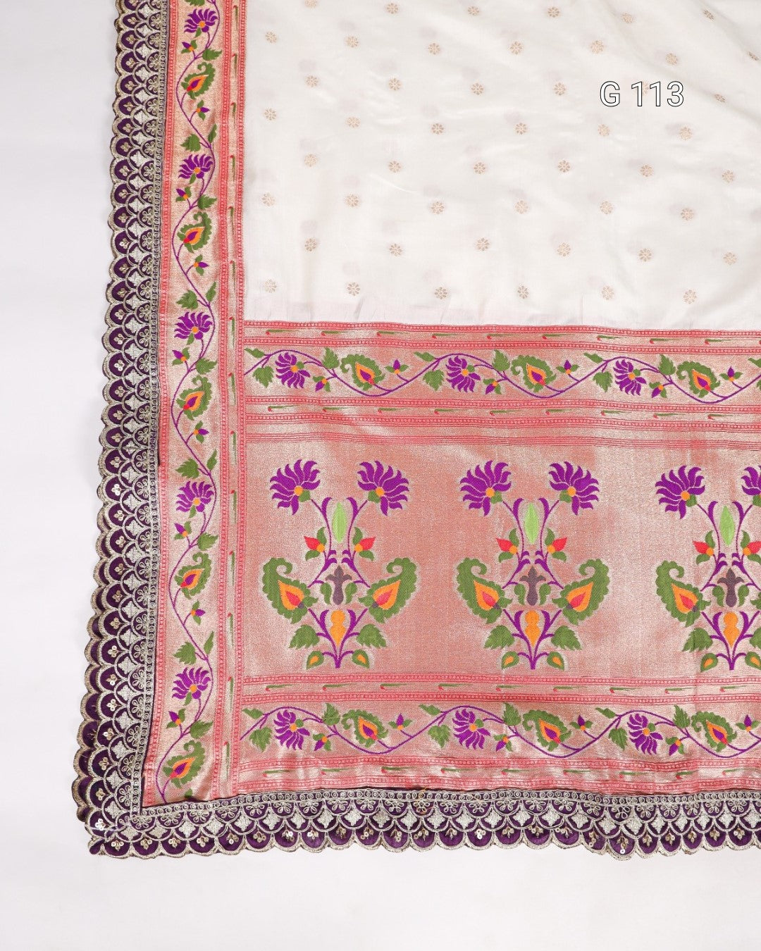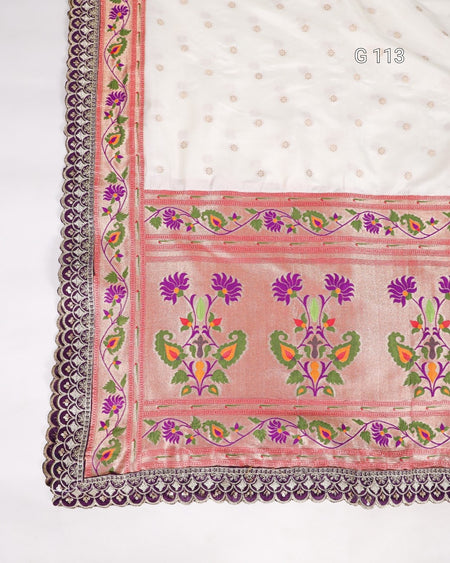 Jacquard Silk Dupatta with Zari Weaving & Embroidery Lace Border – G 113