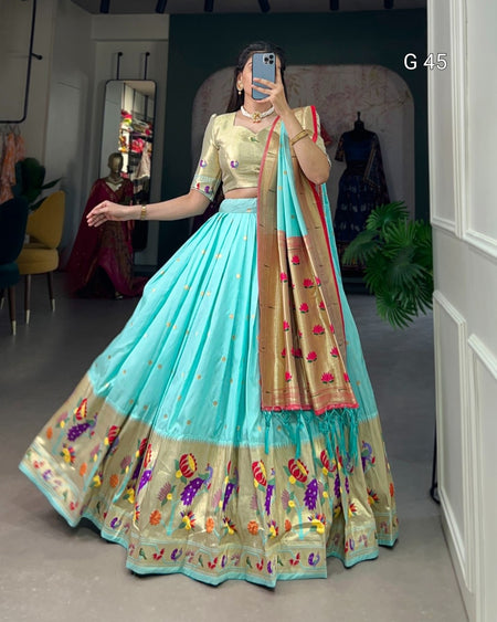 Jacquard Silk Paithani Lehenga with Zari Weaving Work & Handmade Tassels – G 45 Sky Blue
