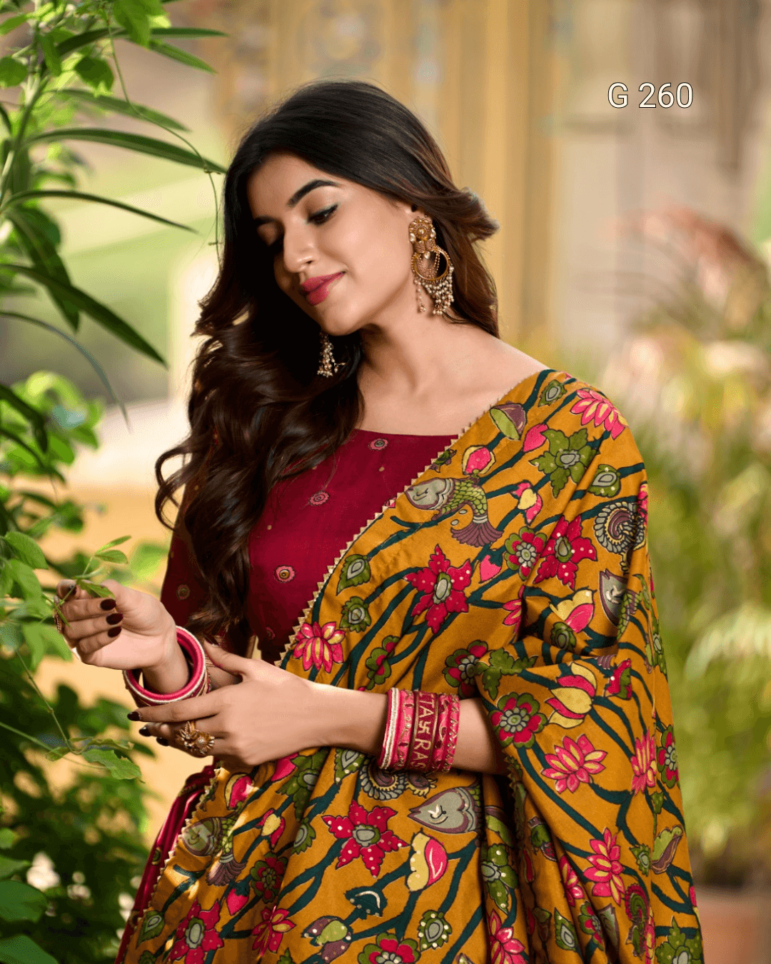 Work: Kalamkari Print with Gotta Patti Lace Border & Tassels