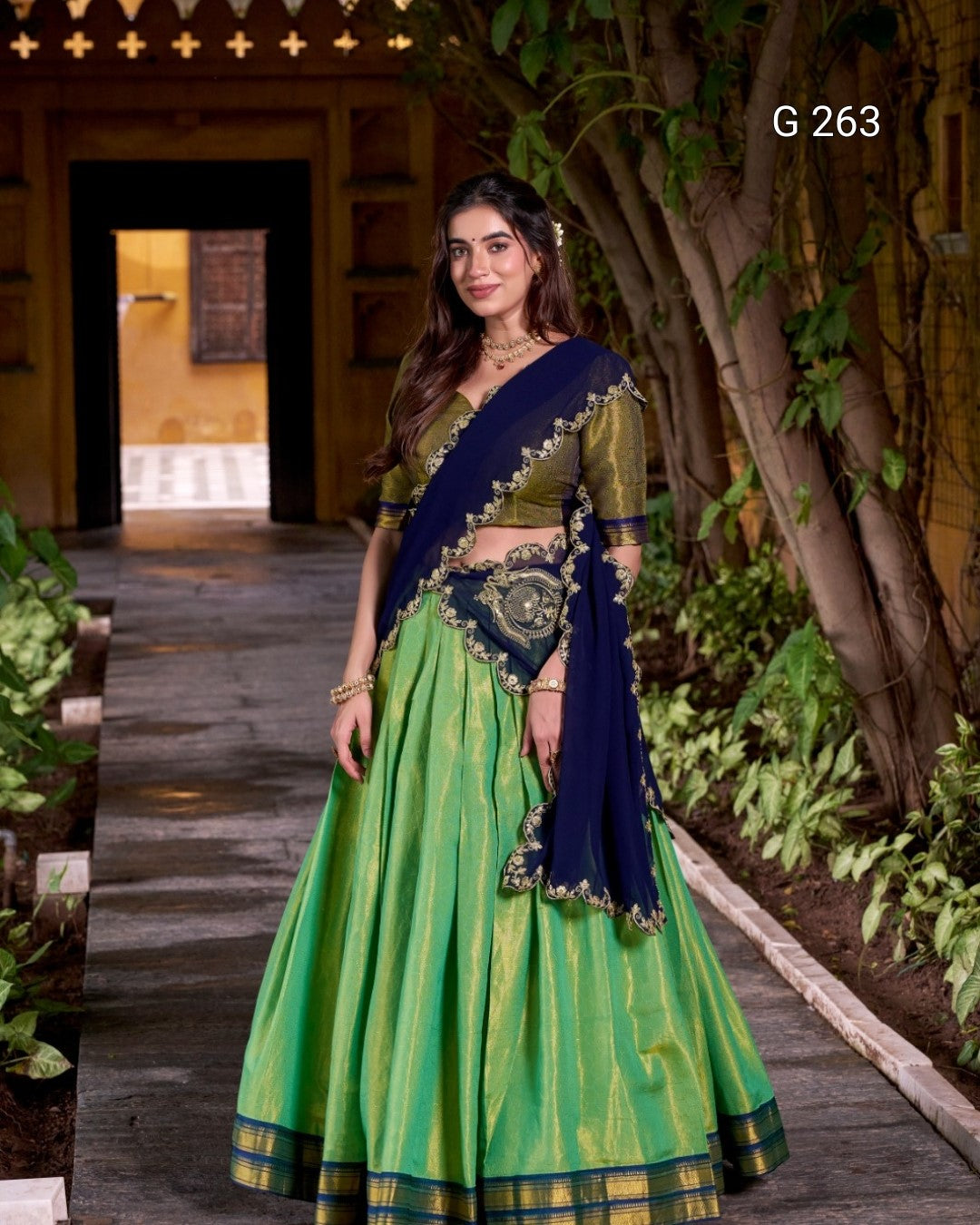 Kanchipuram Zari Work Lehenga with Sequins Dupatta – G 263 Navy Blue