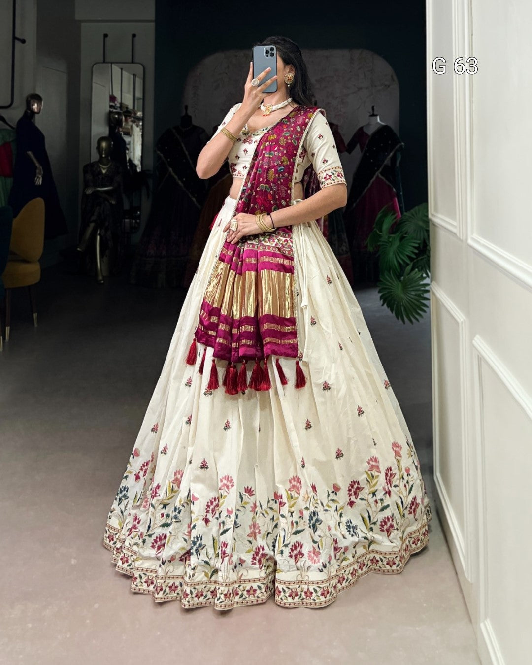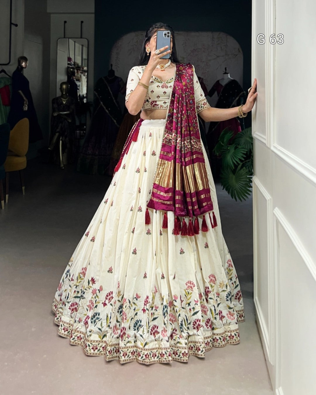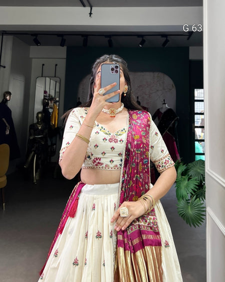 Khadi Cotton Lehenga with Sequins & Thread Embroidery – G 63 Flower