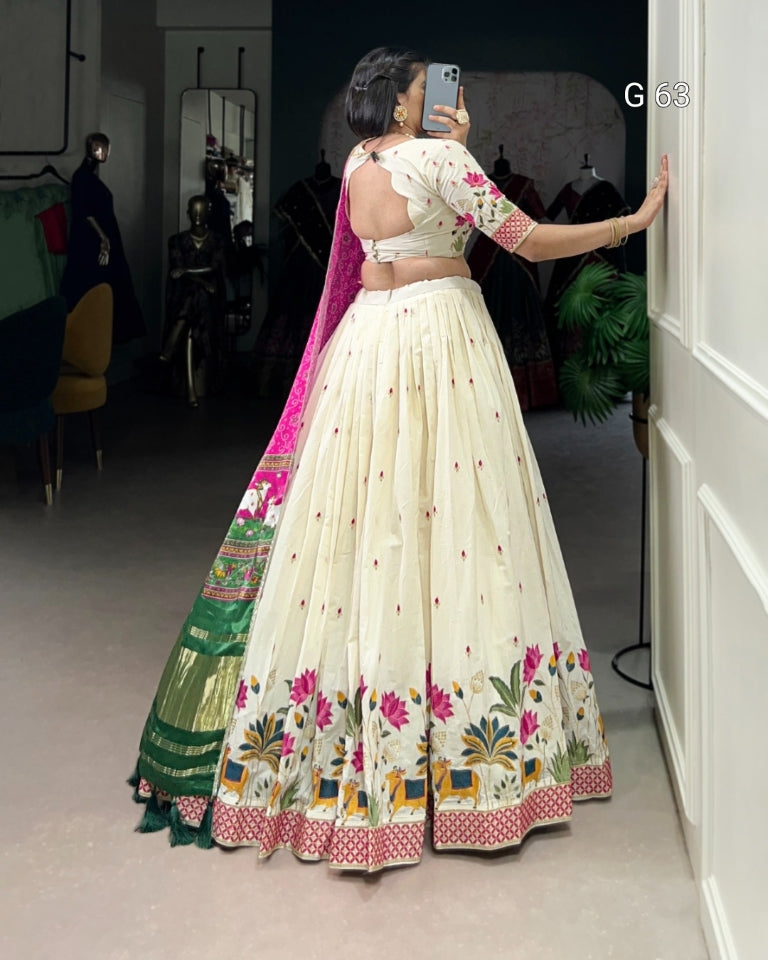 Khadi Cotton Lehenga with Sequins & Thread Embroidery – G 63 Louts