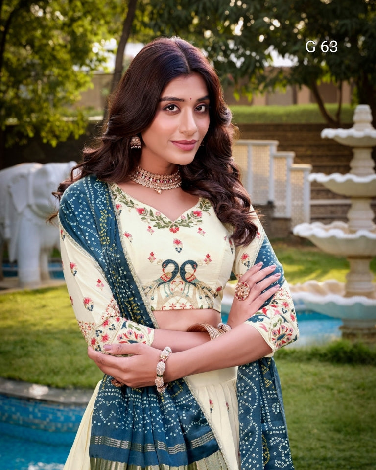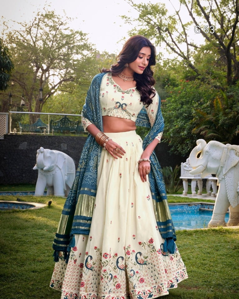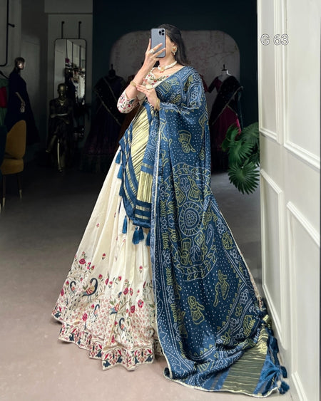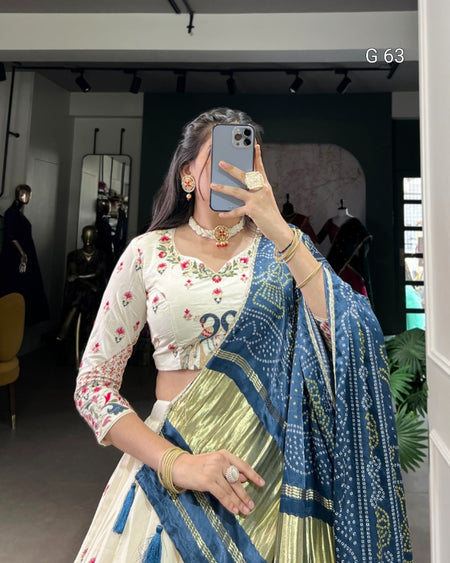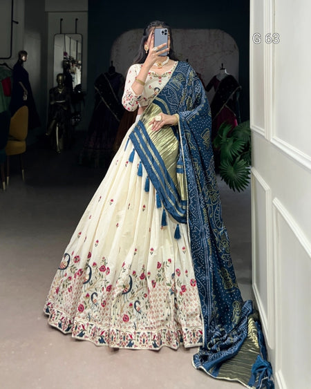 Khadi Cotton Lehenga with Sequins & Thread Embroidery – G 63 Peacock