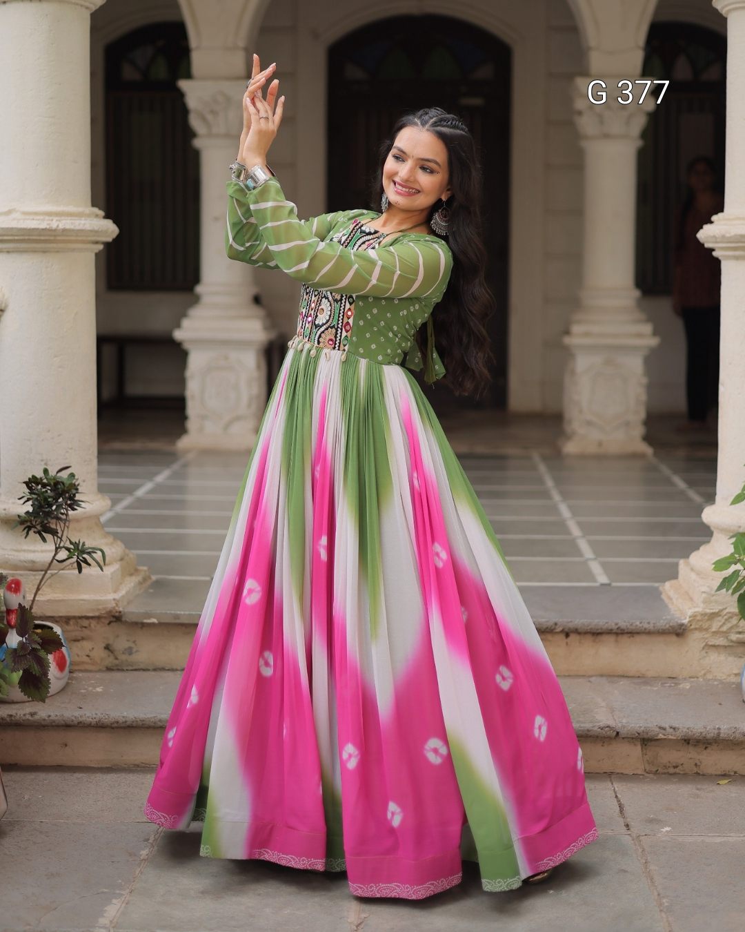 Work: Multi Thread Embroidered & Gota Patti Work